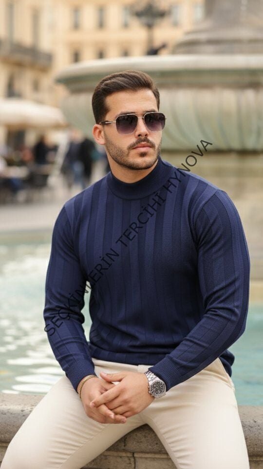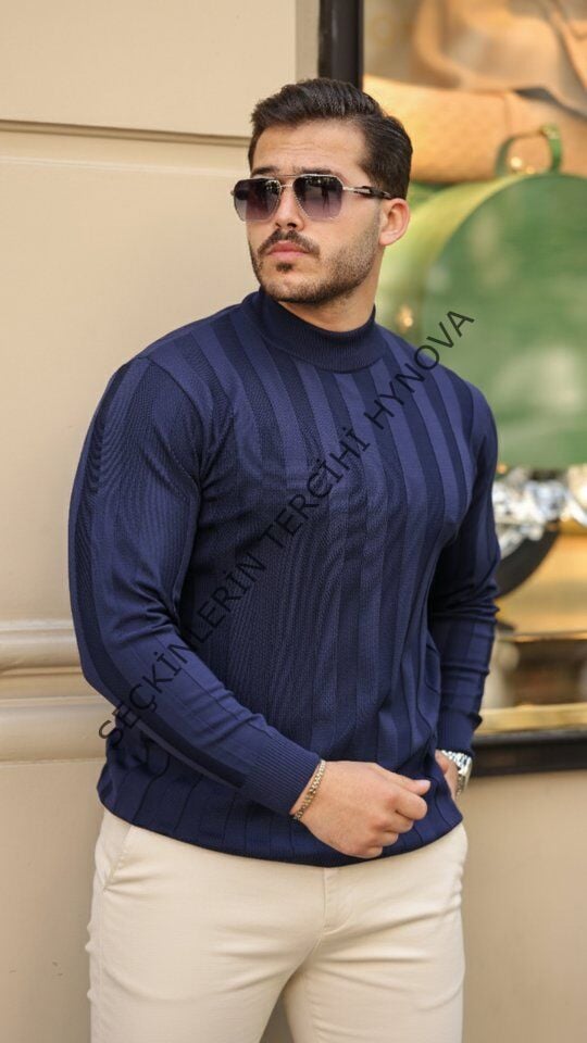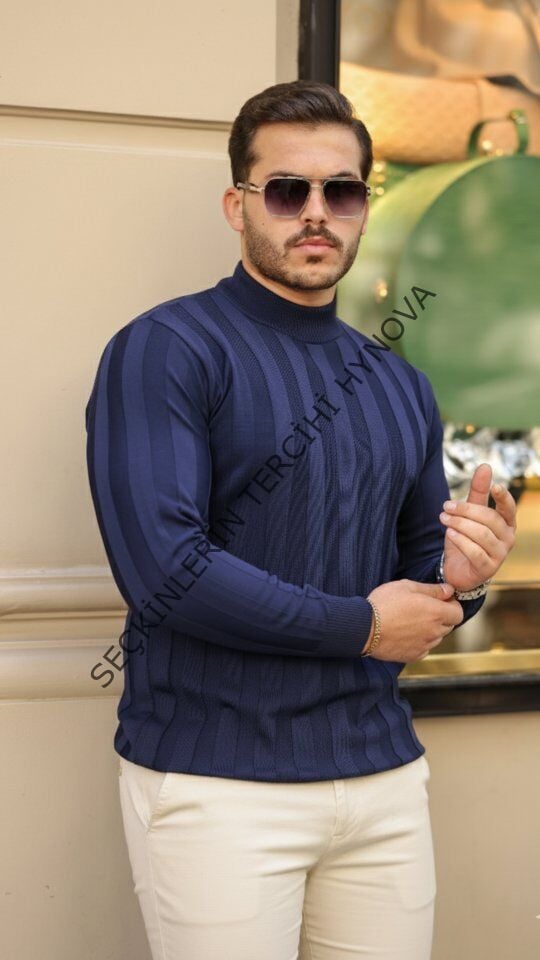 Erkek Yarım Balıkçı Yaka Kabartma Desenli Triko