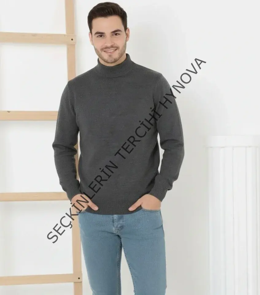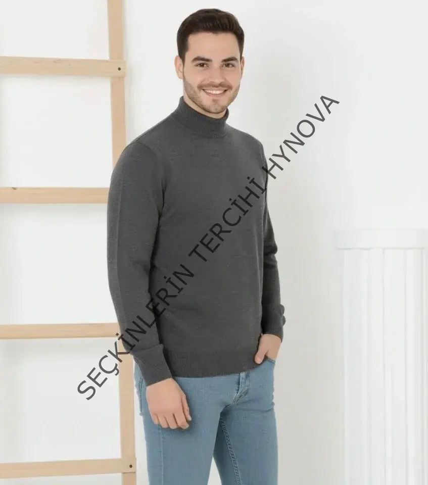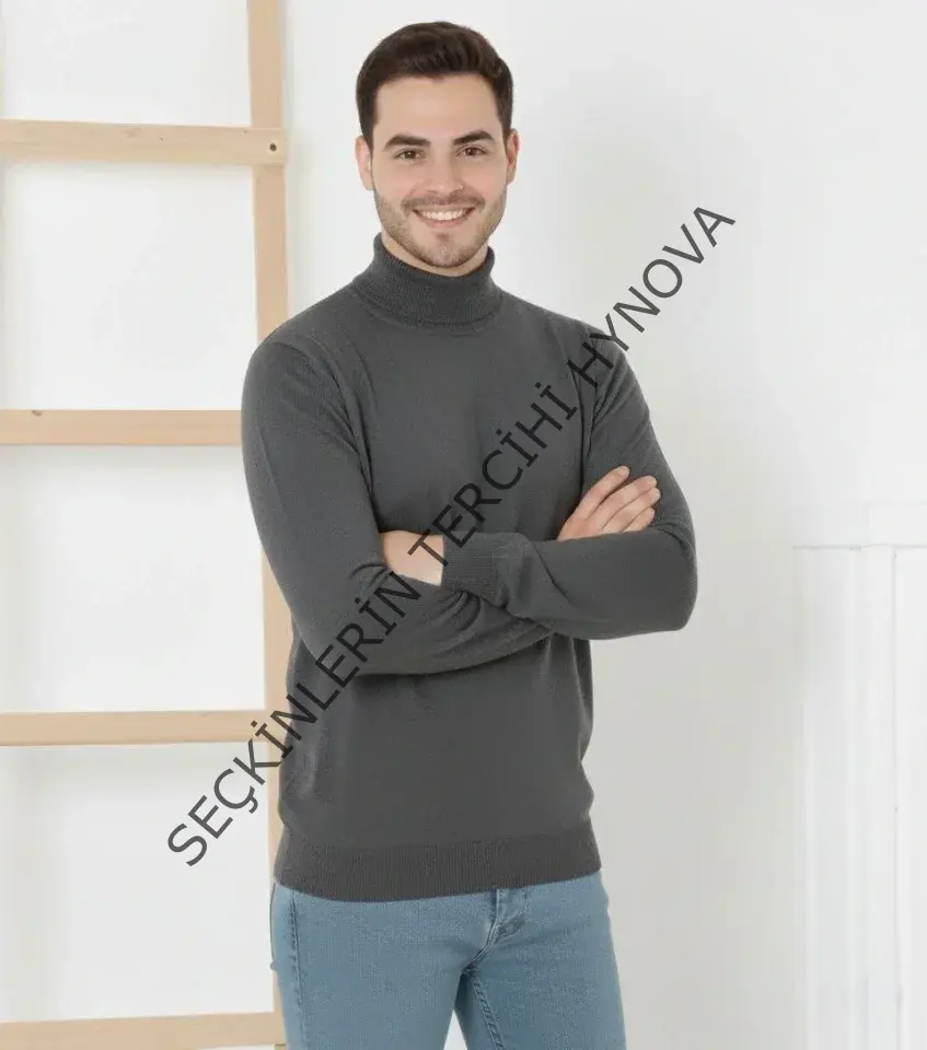 Erkek Yarım Boğaz Triko Kazak Yumuşak Dokulu Pamuklu Ince Dokuma, Uzun Kollu Rahat Regular Kalıp - Füme