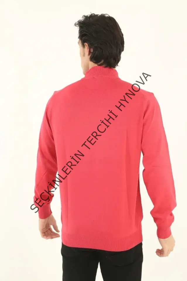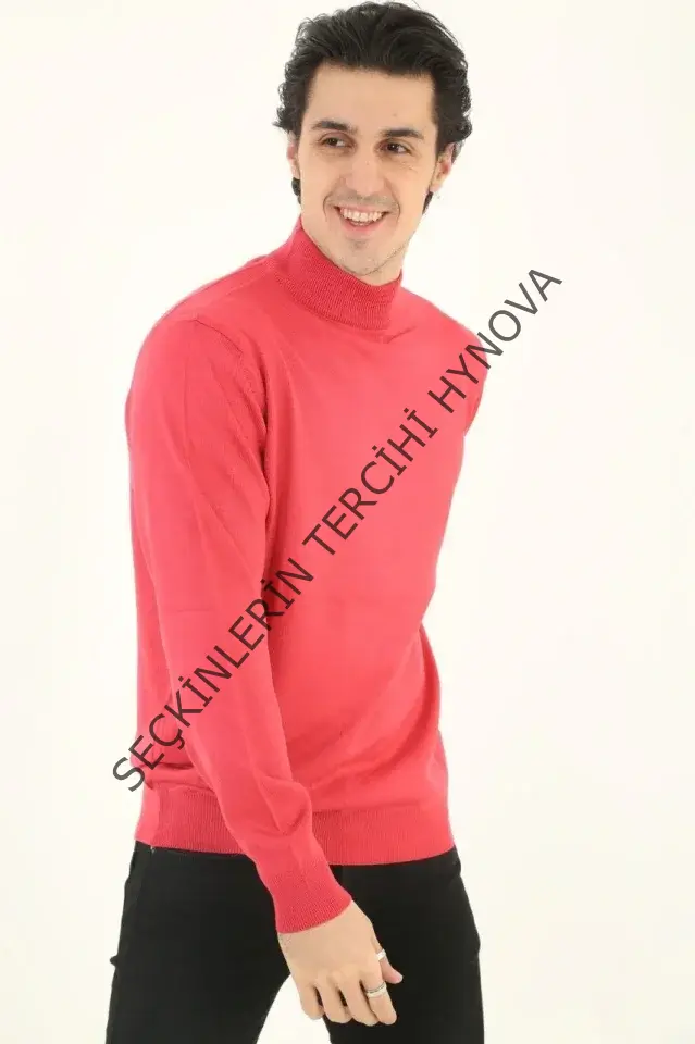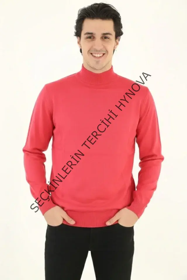 Erkek Yarım Boğaz Triko Kazak Yumuşak Dokulu Pamuklu Ince Dokuma, Uzun Kollu Rahat Regular Kalıp - Pembe