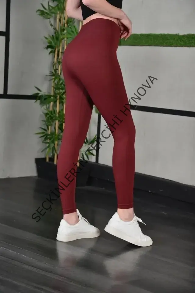 Full Likra Extra Toparlayıcı Yüksek Bel Dar Kalıp Günlük Spor Tayt - Bordo
