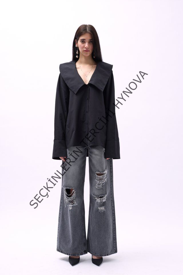 Geniş Yaka Volan Kol Gömlek