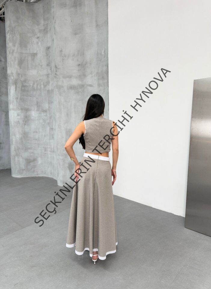 Gi̇o Çi̇zgi̇li̇ Garni̇li̇ Mi̇di̇ Etek Yelek Takim
