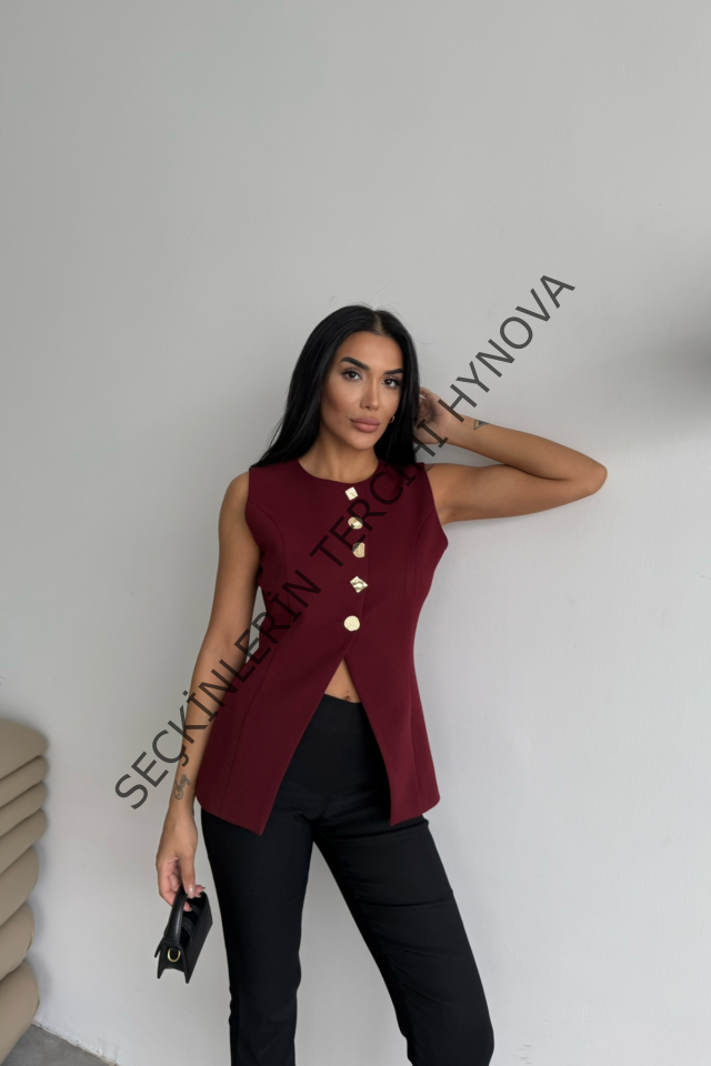 GOLD DÜĞME DETAYLI YELEK - Bordo