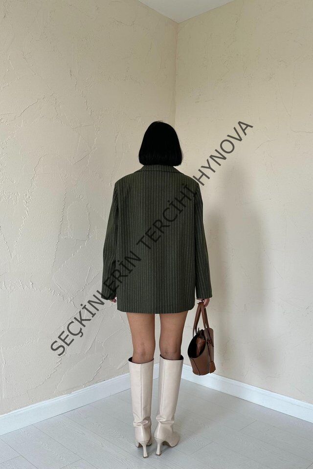 Haki Çizgili Oversize Ceket