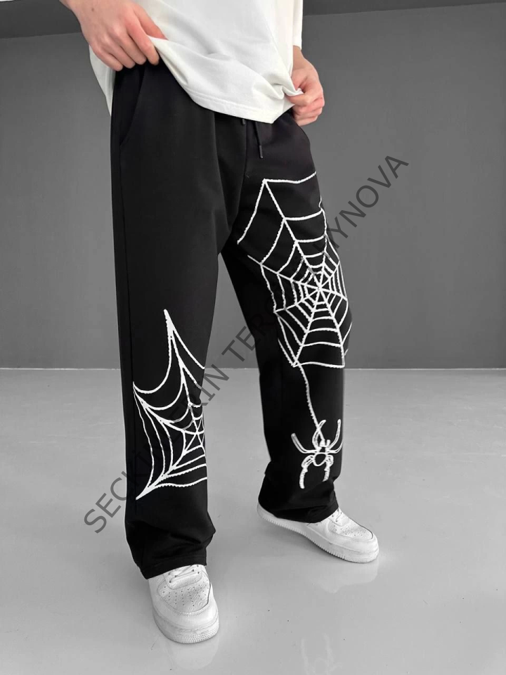 İki İplik Kumaş Örümcek Baskılı Esofman - Siyah