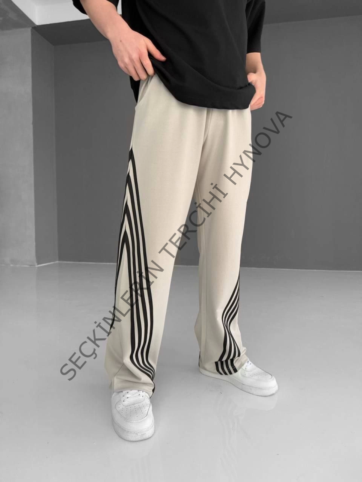 İki İplik Kumaş Şeritli Alt Esofman - Bej