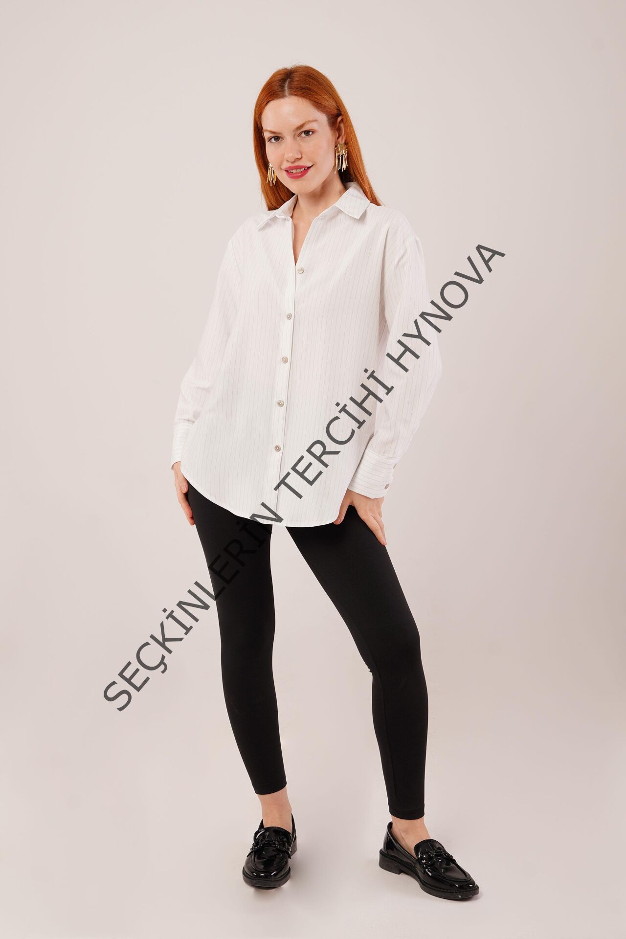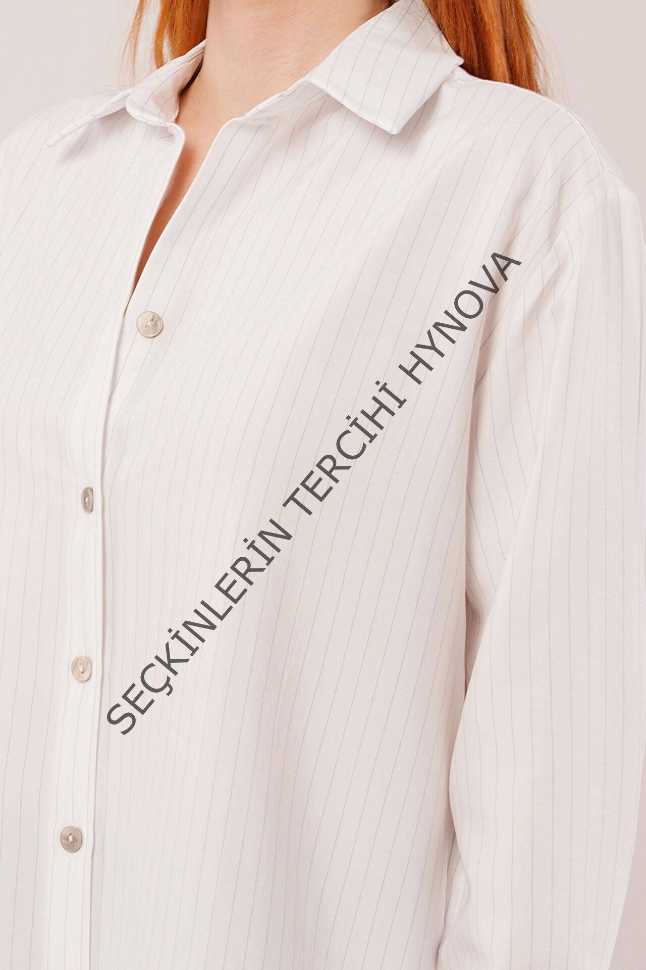 İnce Çizgi Detaylı Beyaz Gömlek