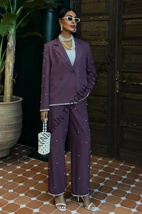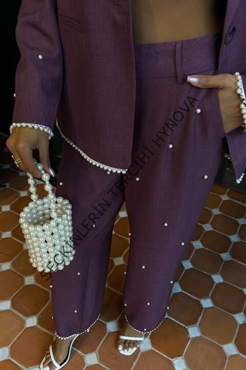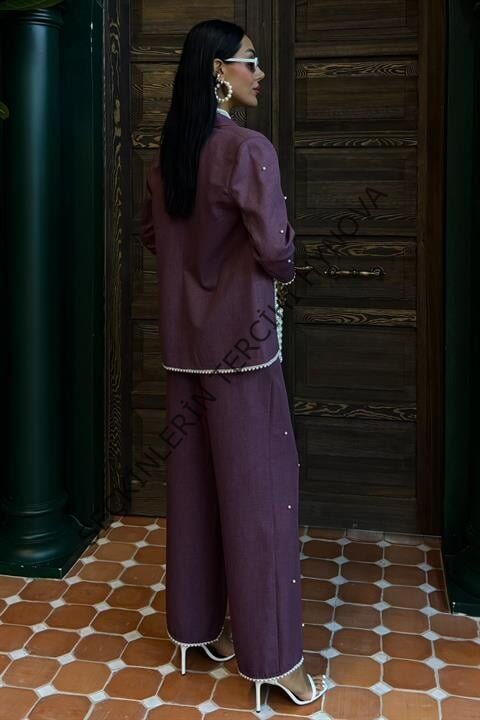 İnci Detaylı Ceket Pantolon Keten Takım 10124