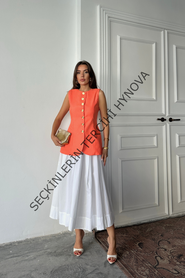JAKAR KETEN YELEK BELDEN OTURTMALI GOLD DÜĞMELİ - Orange
