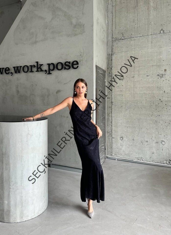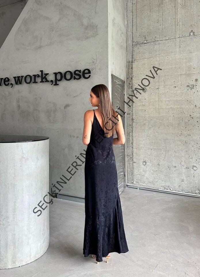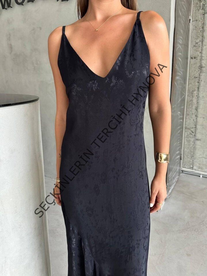 JAKARLI ASKILI SATEN ELBİSE ASİMETRİK - Siyah