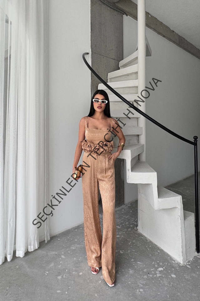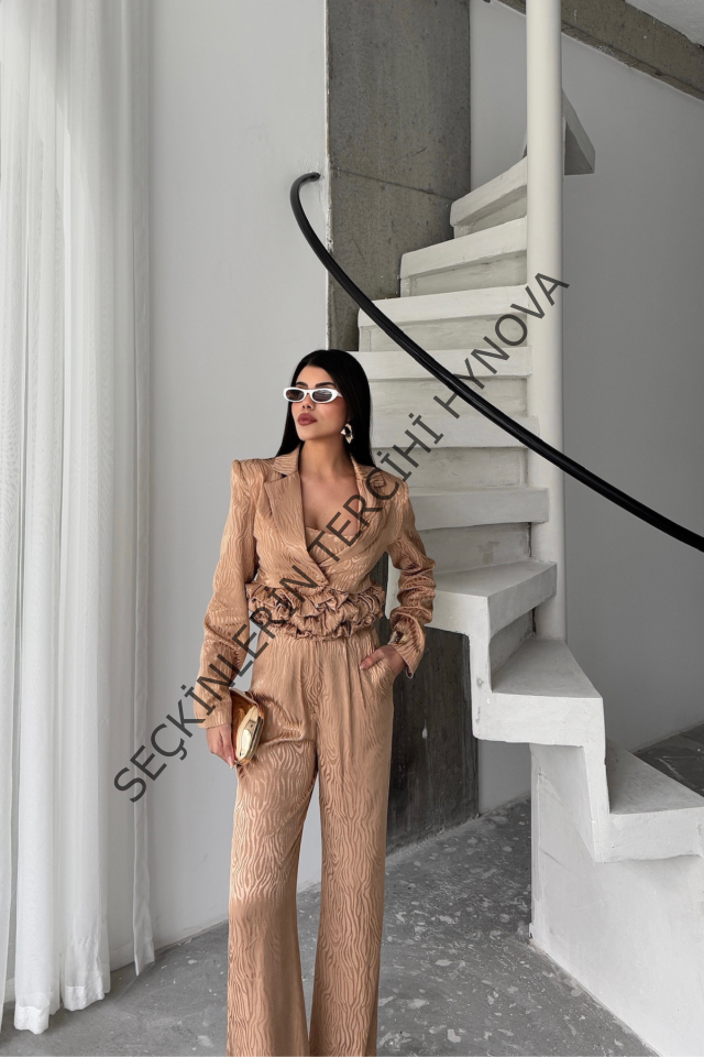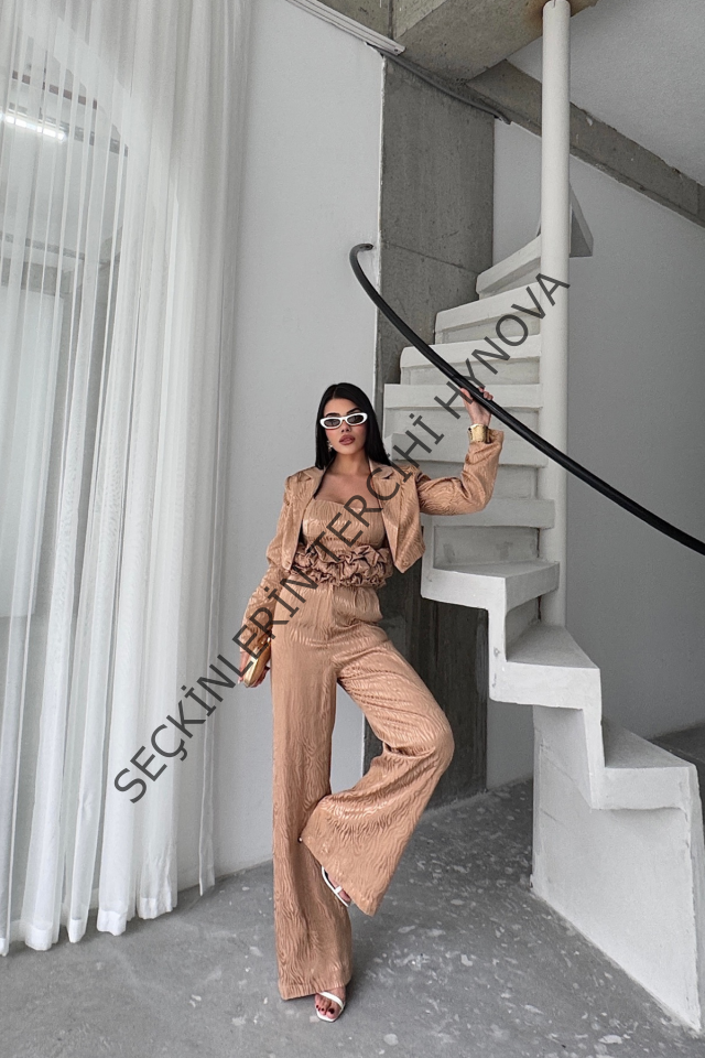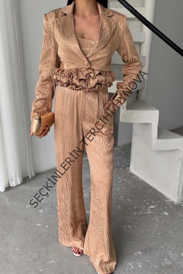 JAKARLI BLUZU TASARIM DETAYLI CEKET PANTOLON VE BLUZ 3 LÜ TAKIM