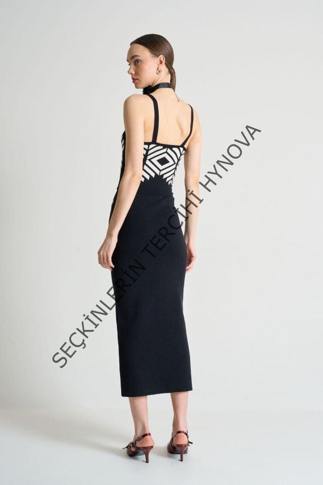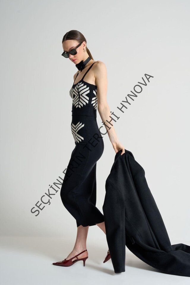 Jakarlı İnce AskılıTriko Takım - Siyah-Beyaz Kayısı