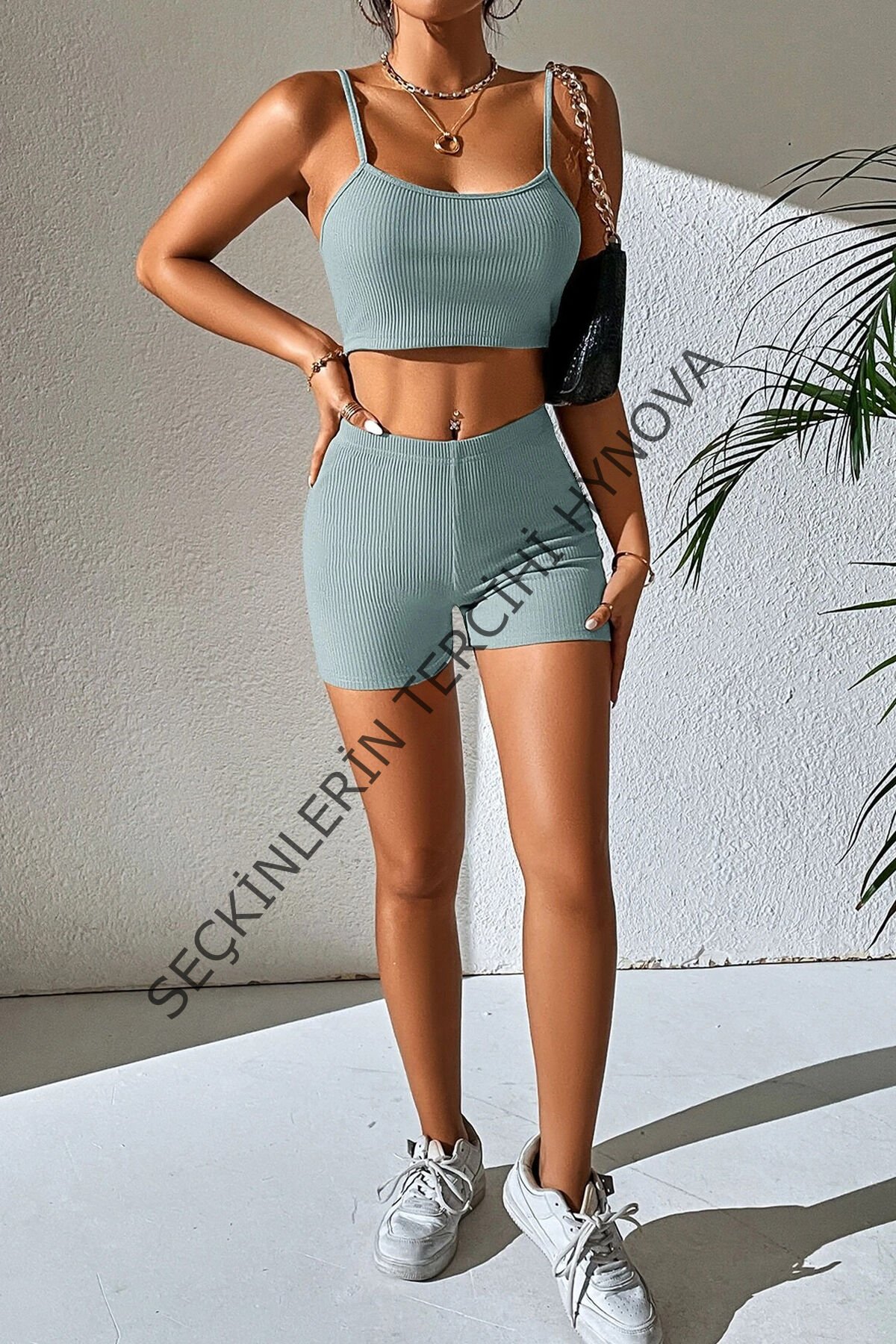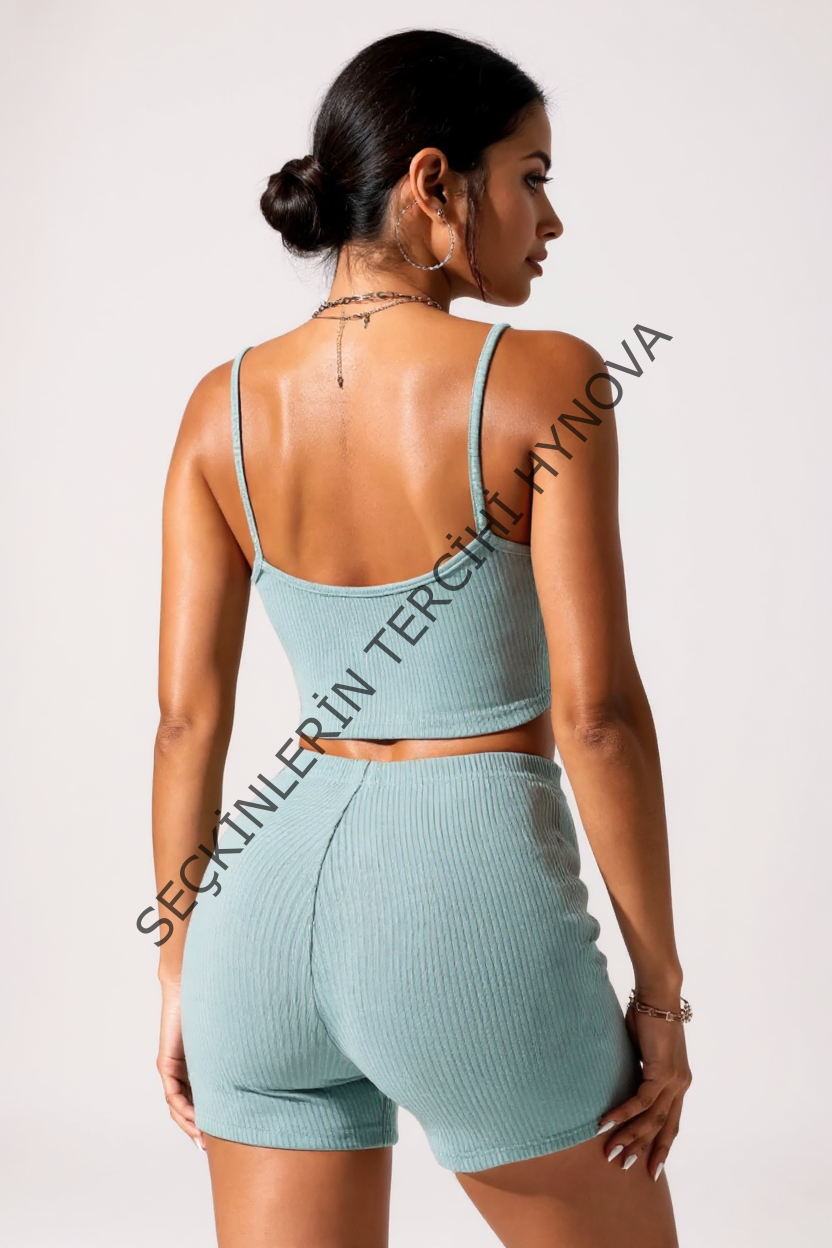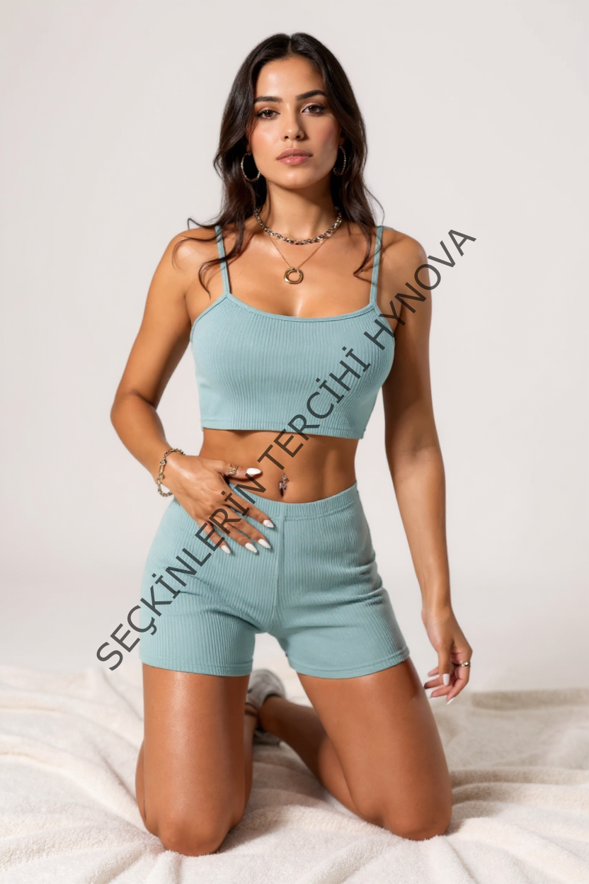 Kadın Açık Mavi Şortlu Kaşkorse Gecelik Takım – Modern, Konforlu ve Günlük Kombinlere Uygun
