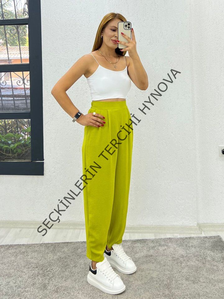 Kadın Aerobin Kumaş Bel Lastikli Pileli Pantolon