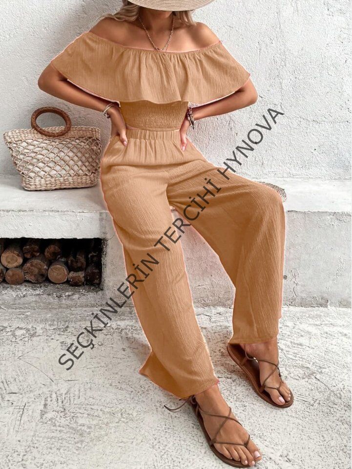 Kadın Aerobin Kumaş Fırfır Detaylı Madonna Yaka Takım