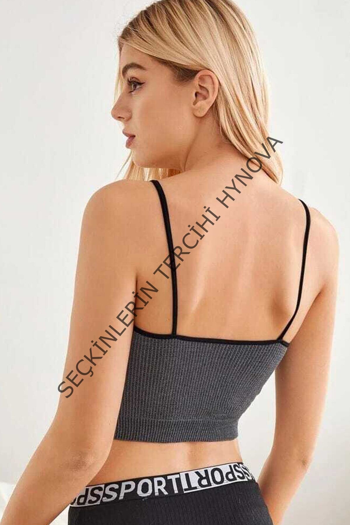 Kadın Anstrasit Gri İp Askılı Crop Top Bluz