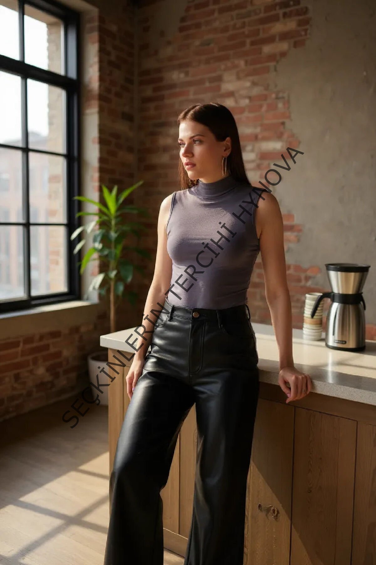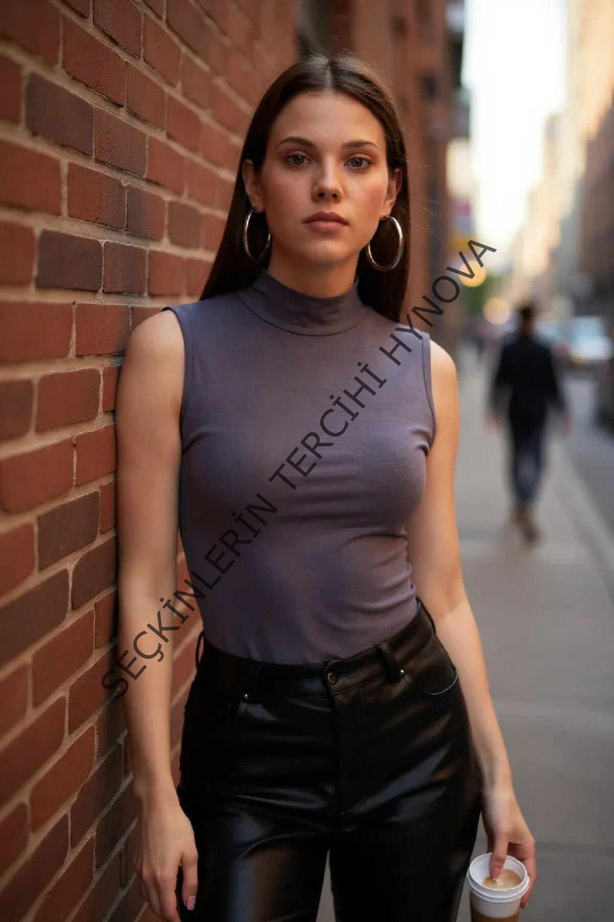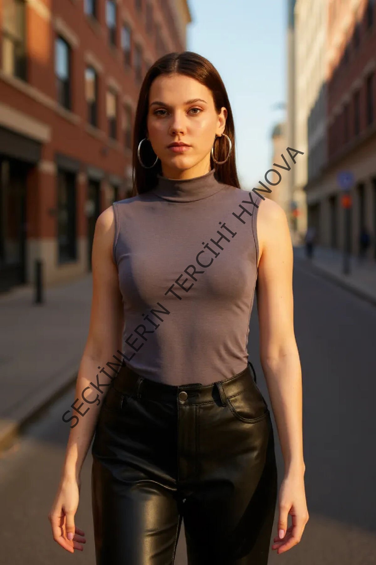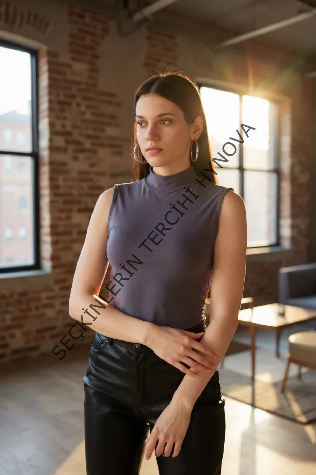 Kadın Antrasit Gri Kolsuz Balıkçı Yaka Basic Bluz