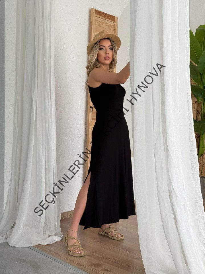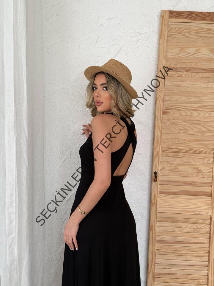 Kadın Arkadan çapraz Detay Yuvarlak Yaka Maksi Viskon Elbise