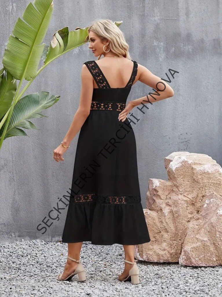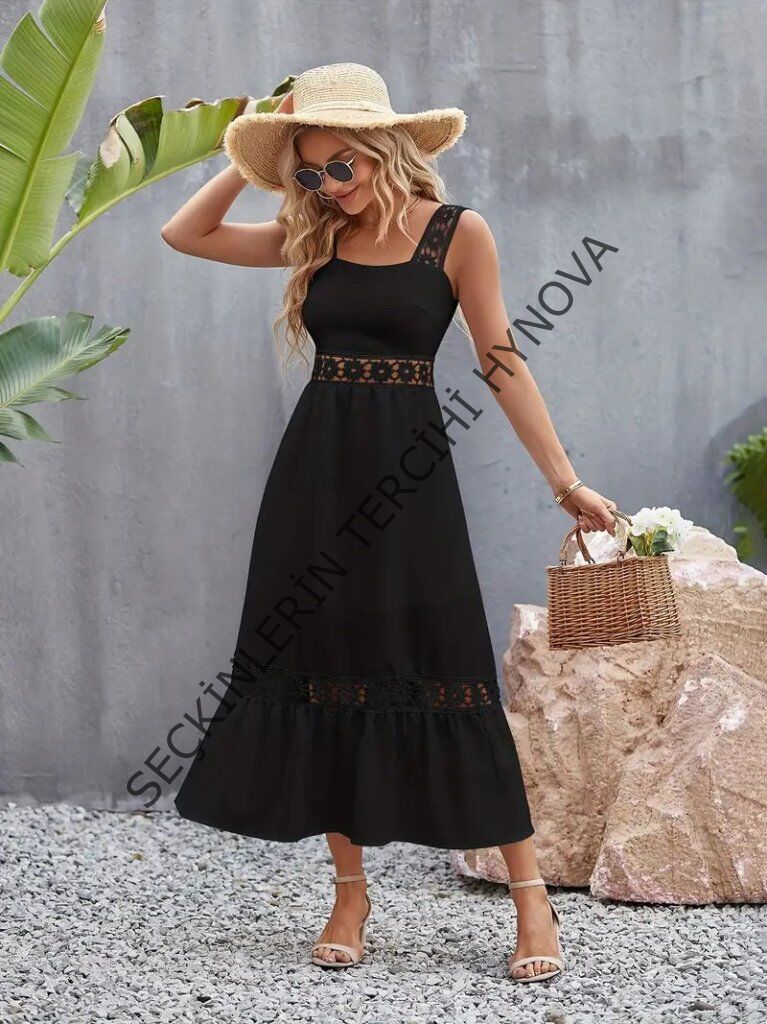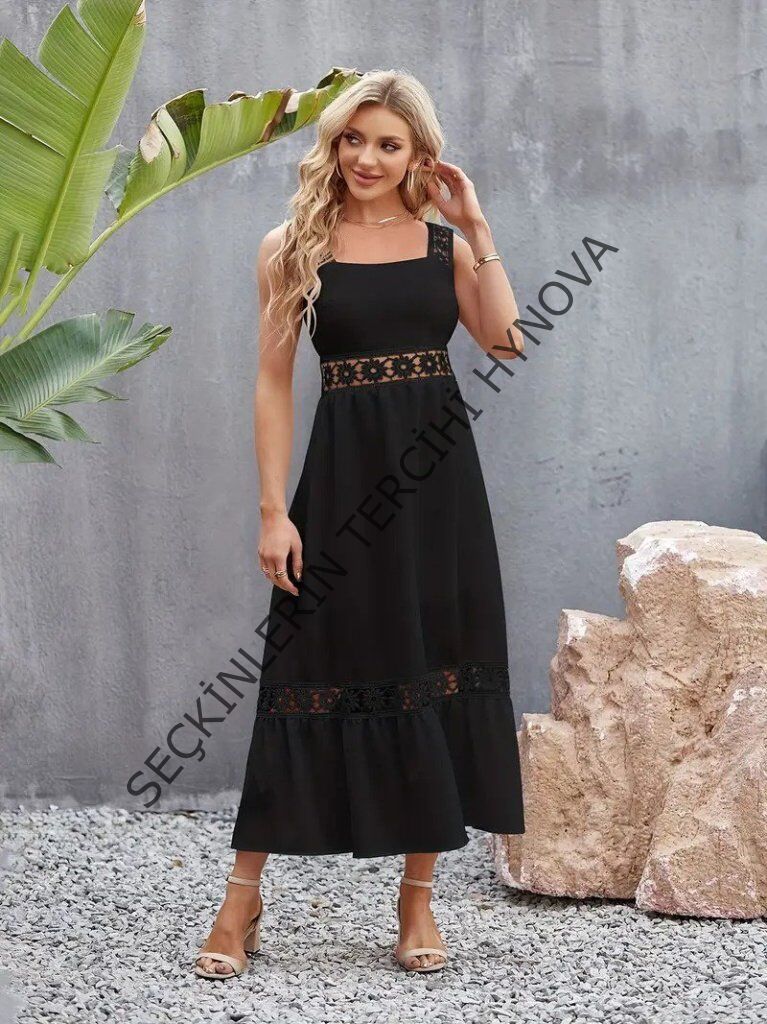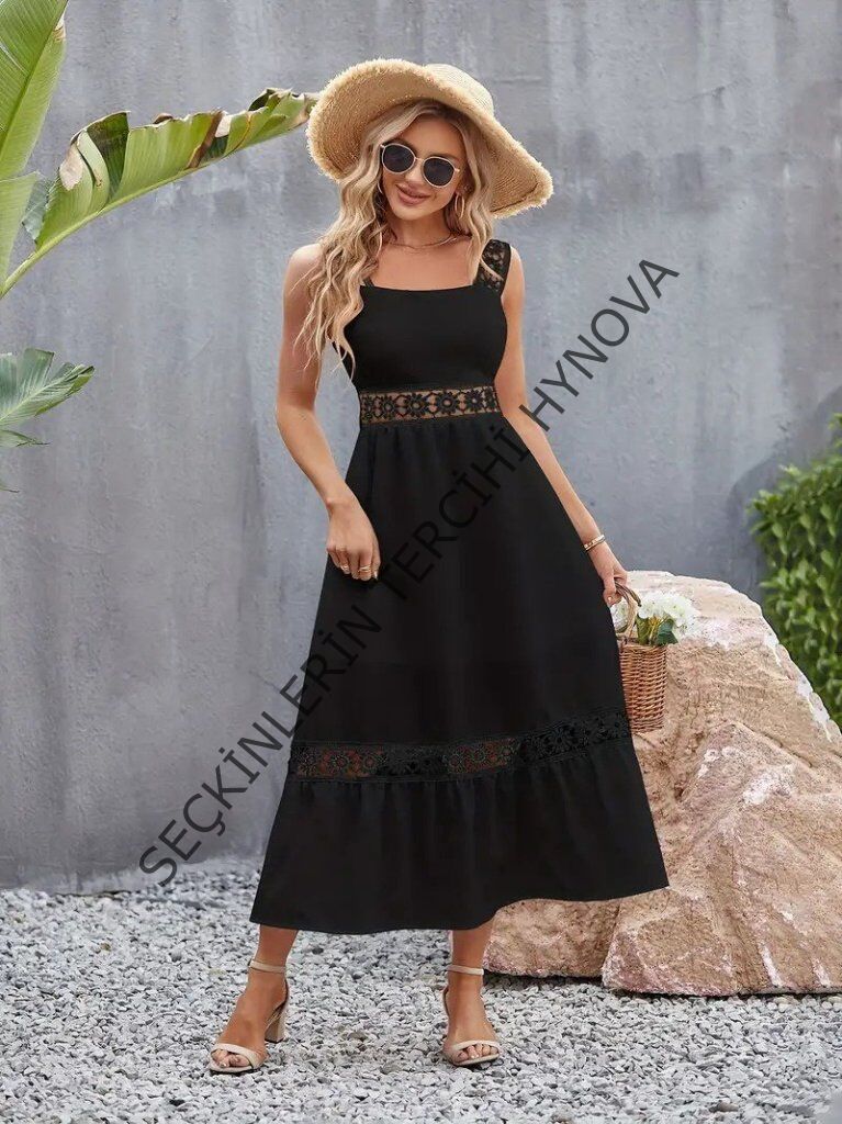 Kadın Askılı Dantel Detaylı Kiloş Janjan Krep Elbise