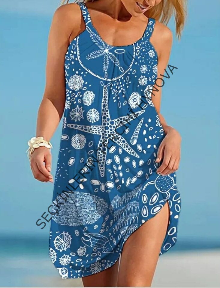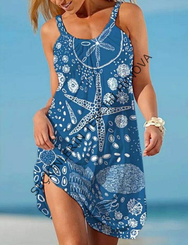 Kadın Askılı Deniz Yıldızı Desenli Süprem Elbise
