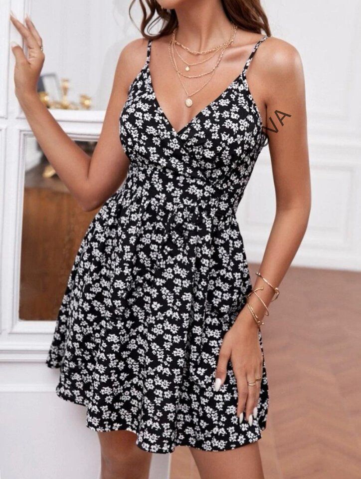 Kadın Askılı, Kruvaze Yaka Mikro Elbise