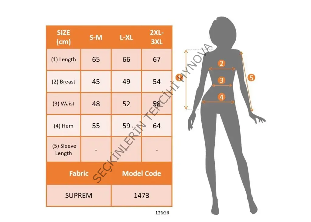 Modelin Ölçüleri: Boy:165, Kg:55, Göğüs:90, Bel:72, Kalça: 100