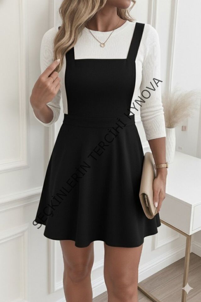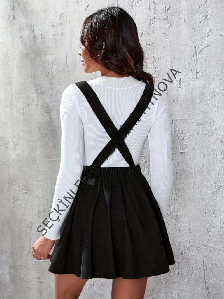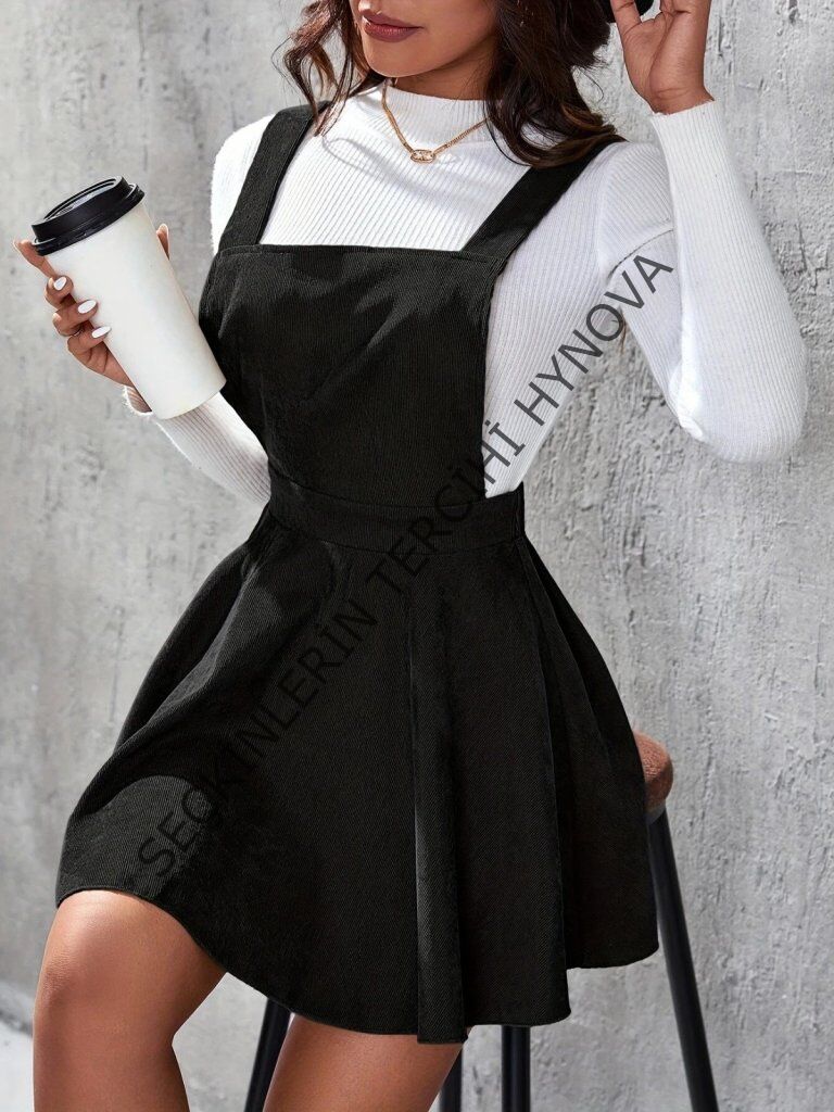Kadın Askılı Sırttan çapraz Detaylı Kısa Kiloş Kadife Mini Elbise