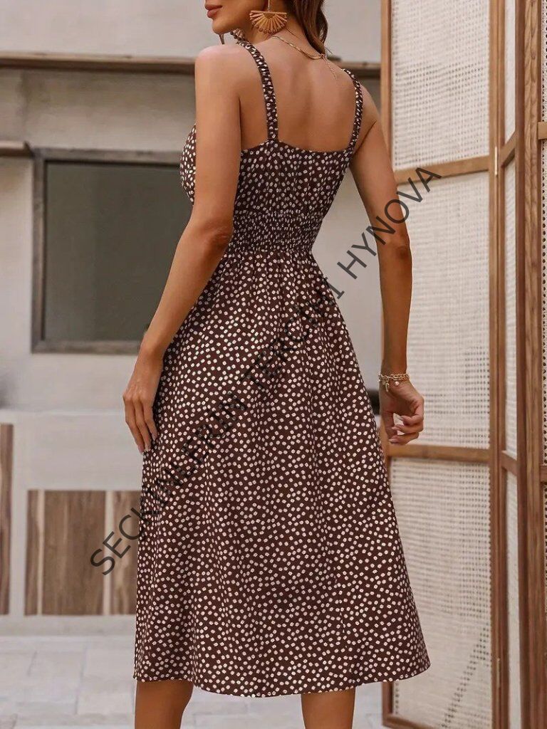 Kadın Askılı V Yakalı Beli Lastikli Yırtmaçlı Süprem Midi Elbise