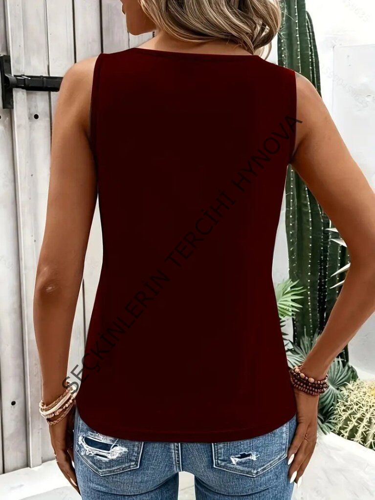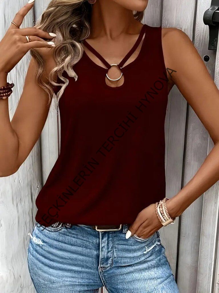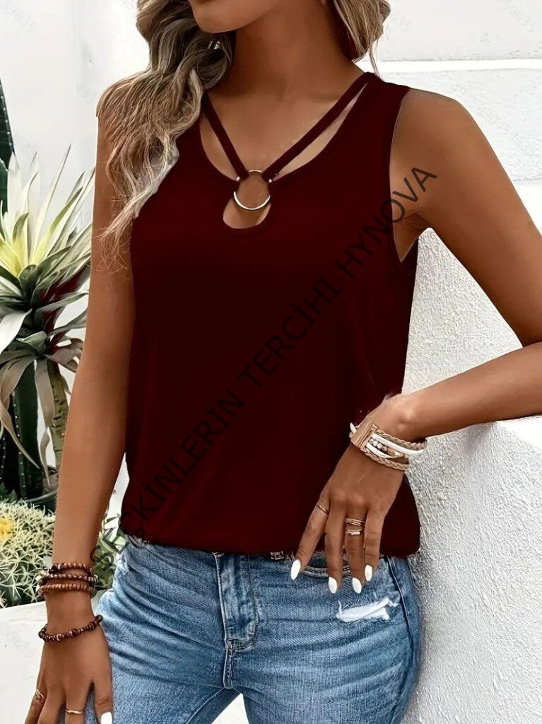Kadın Askılı Yaka şerit Halka Detaylı Viskon Bluz