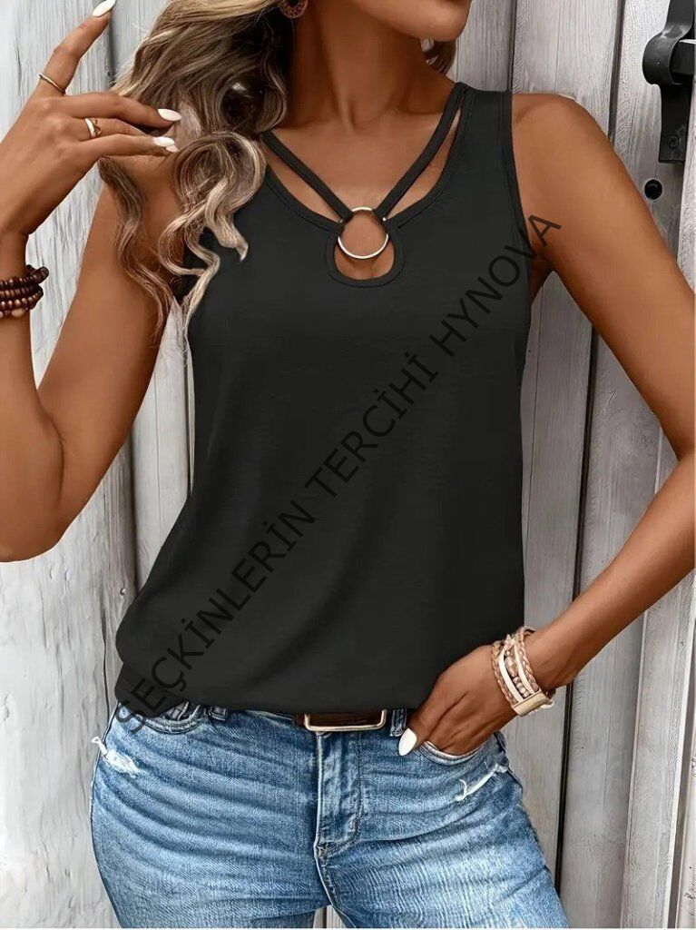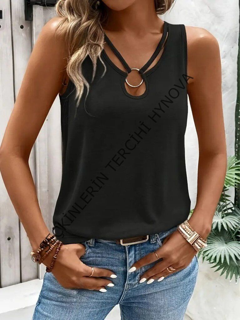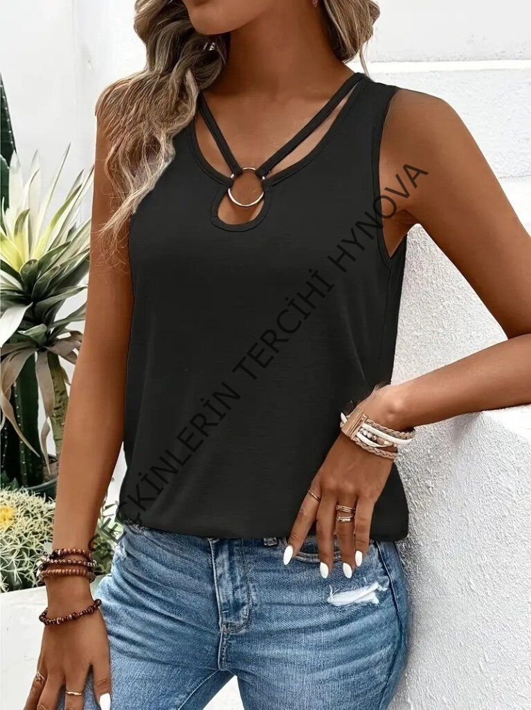 Kadın Askılı Yaka şerit Halka Detaylı Viskon Bluz