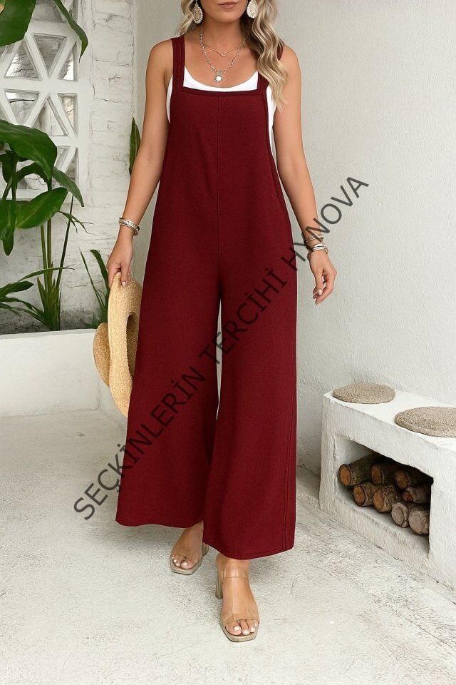Kadın Askılı Yandan Fermuarlı Geniş Paçalı Valencia Tulum