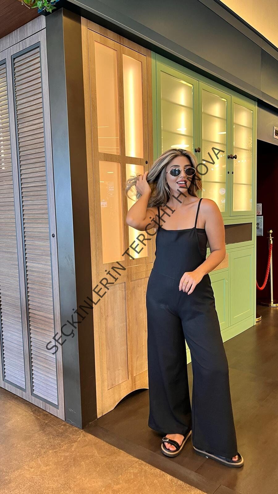Kadın Askılı Yandan Fermuarlı Geniş Paçalı Valencia Tulum