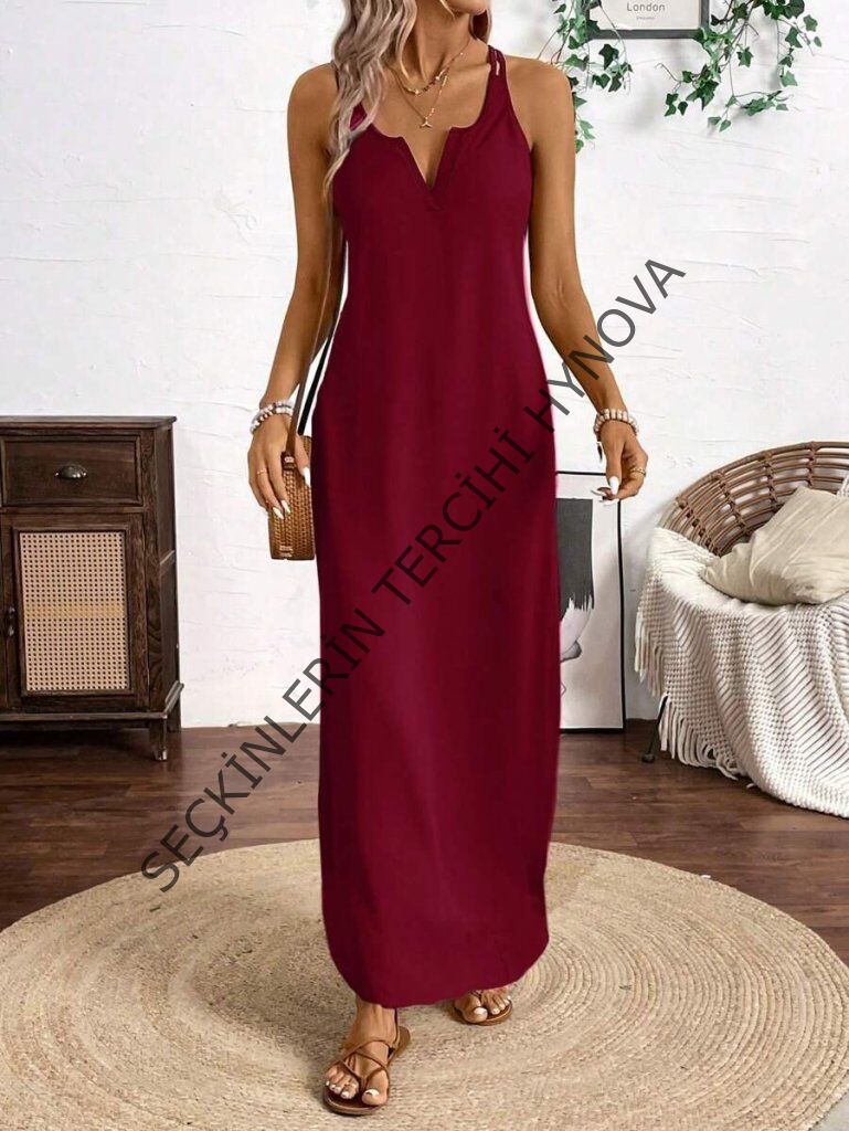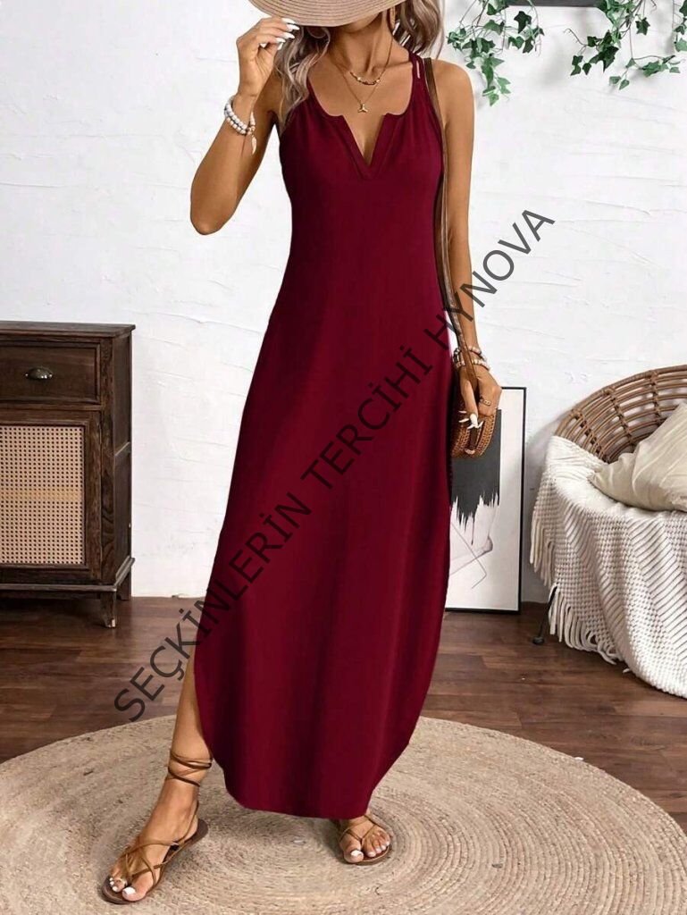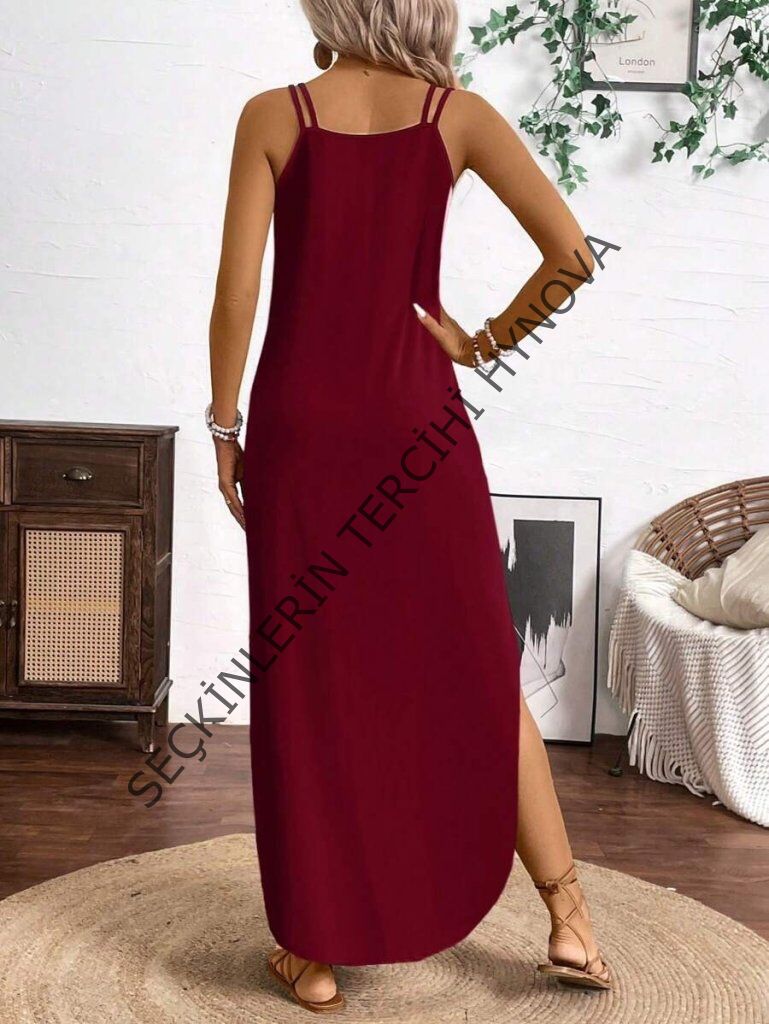 Kadın Askılı Yuvarlak Yaka Asimetrik Detaylı Viskon Elbise