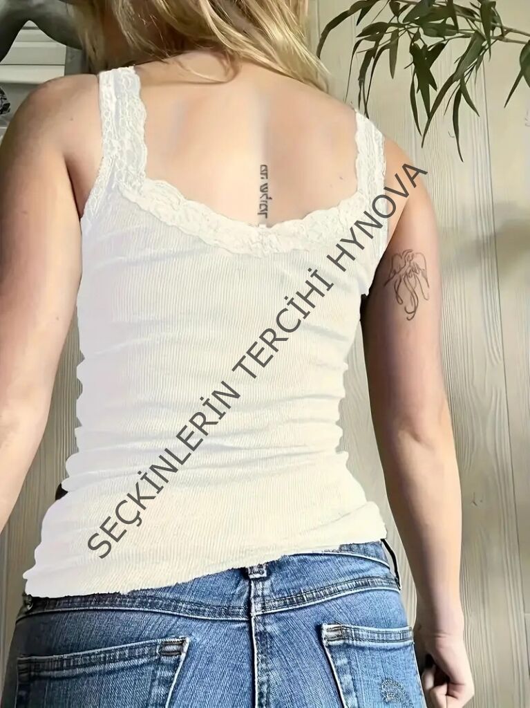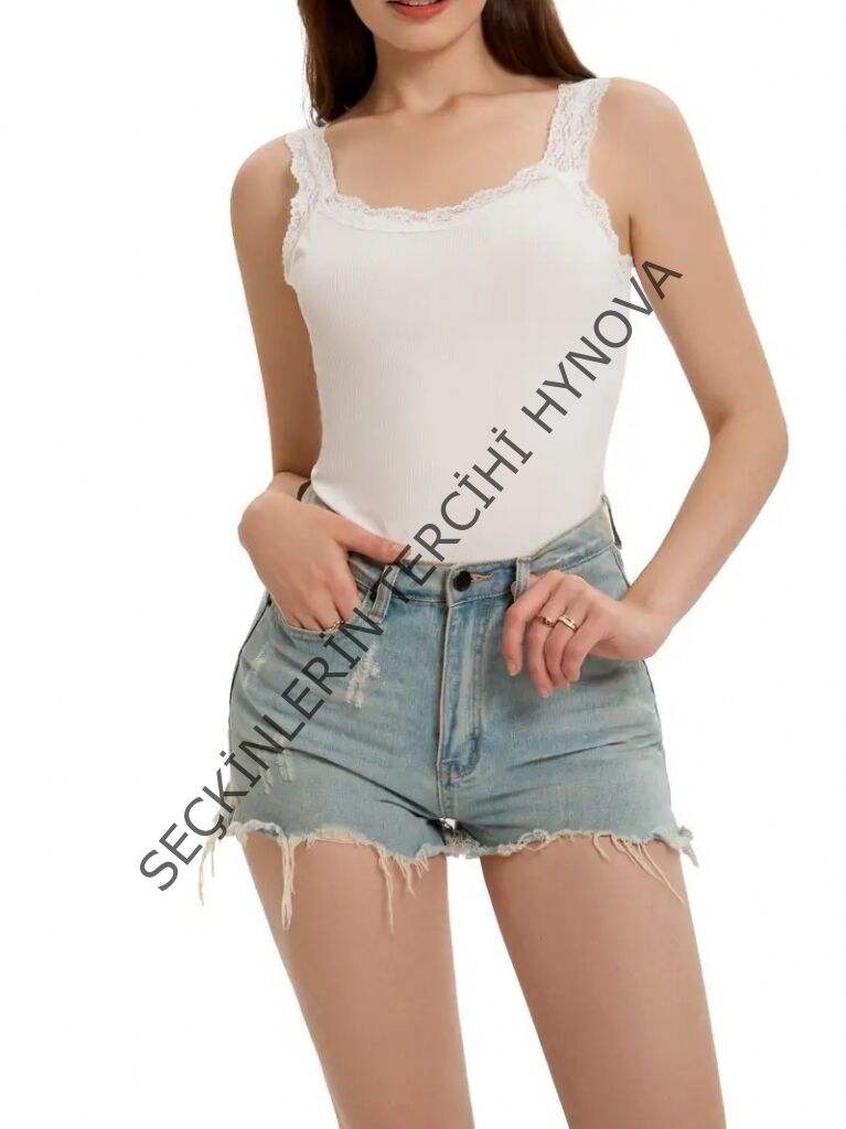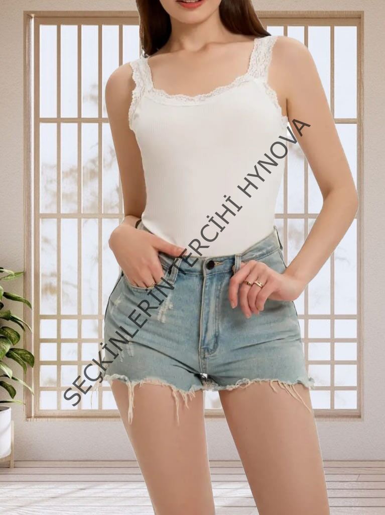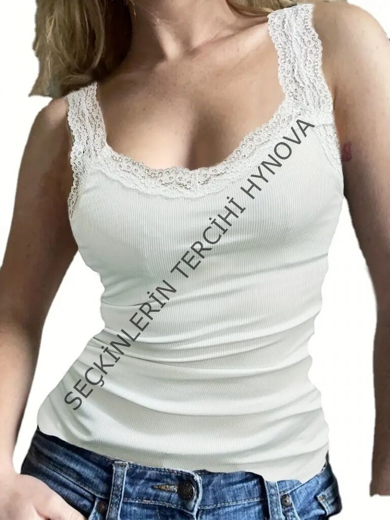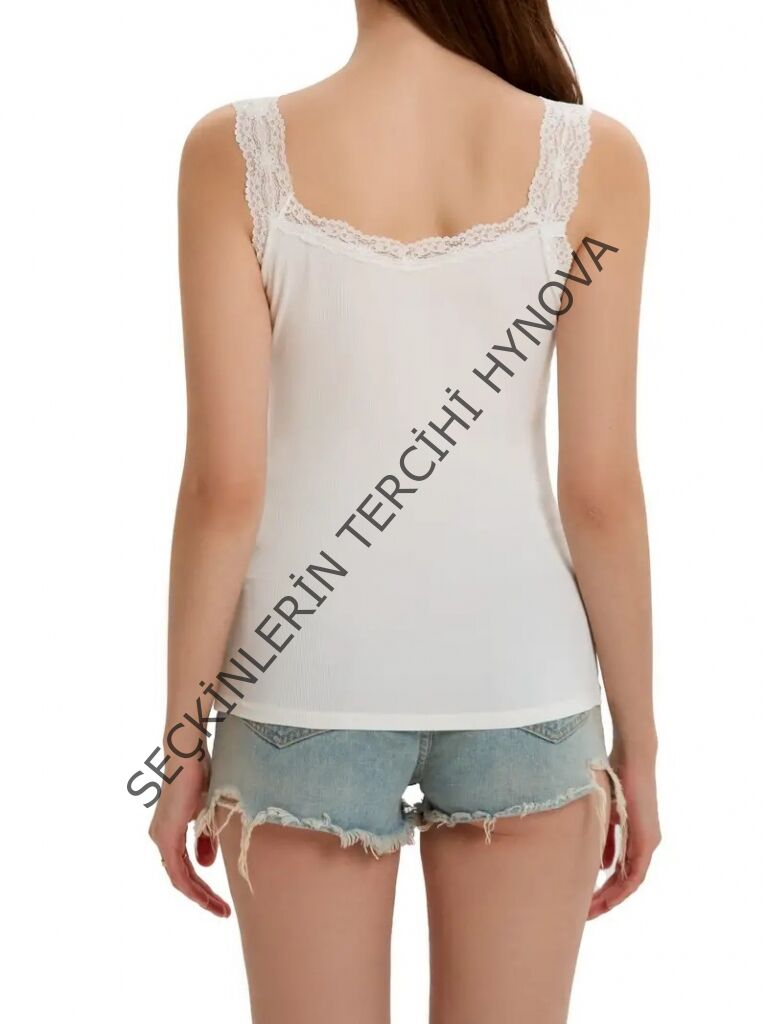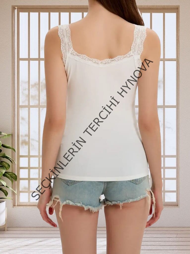 Kadın Askılı Yuvarlak Yaka Dantel Detay Kaşkorse Bluz