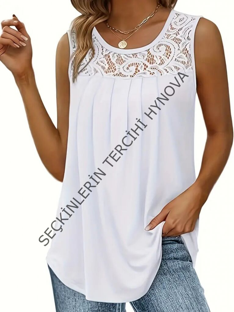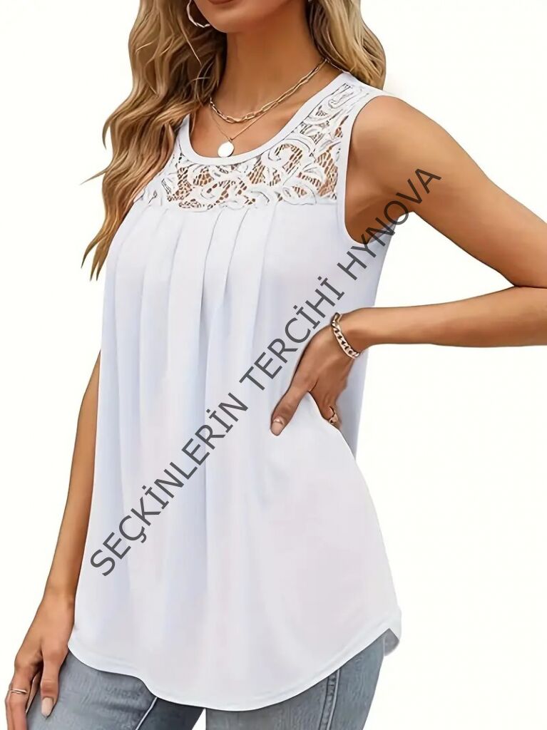 Kadın Askılı Yuvarlak Yaka Dantel Detaylı Viskon Bluz