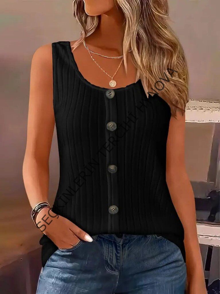 Kadın Askılı Yuvarlak Yaka önden Düğmeli Kalın Fitilli Kaşkorse Bluz