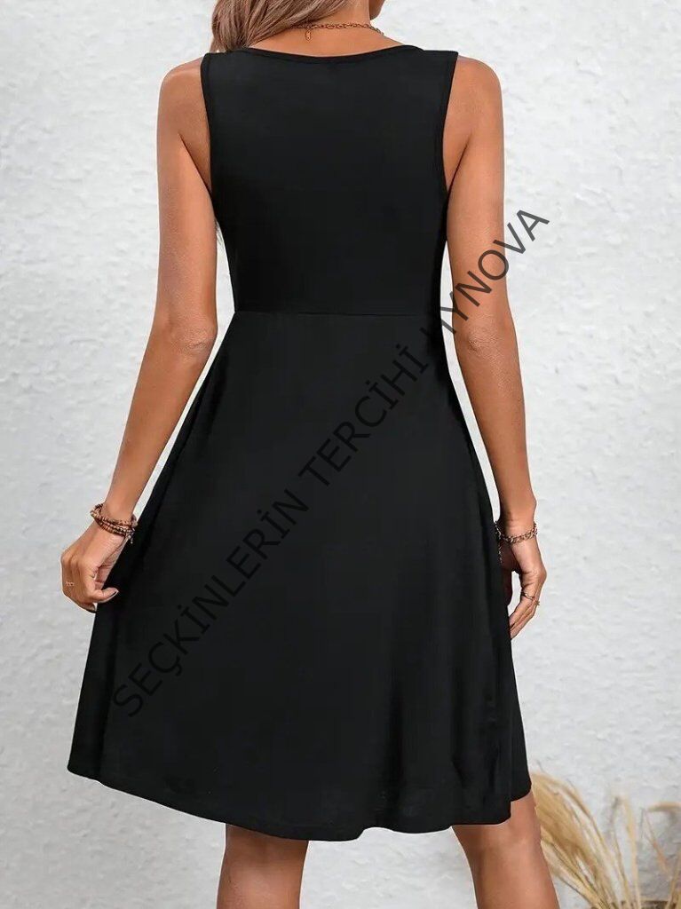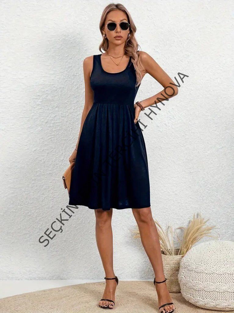 Kadın Askılı Yuvarlak Yaka önden Pileli Viskon Elbise