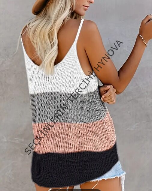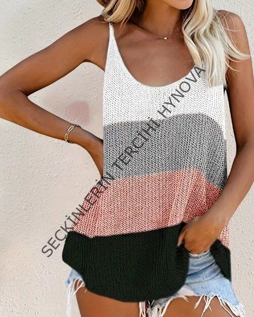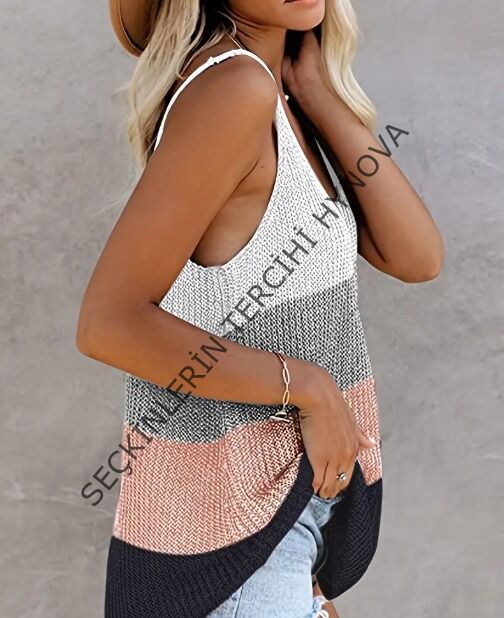 Kadın Askılı Yuvarlak Yaka Salaş Triko Bluz