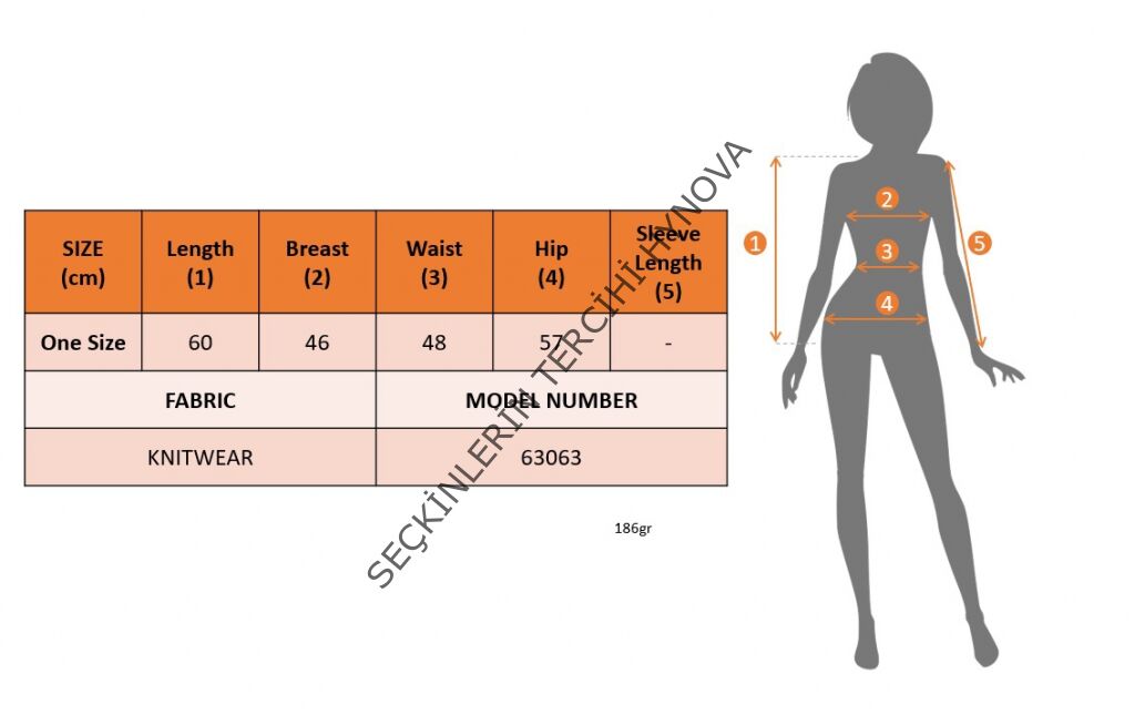 Modelin Ölçüleri: Boy:165, Kg:55, Göğüs:90, Bel:72, Kalça: 100