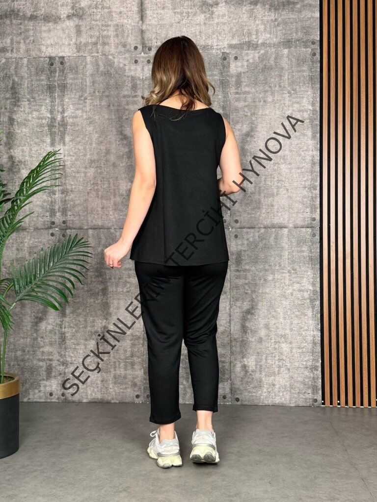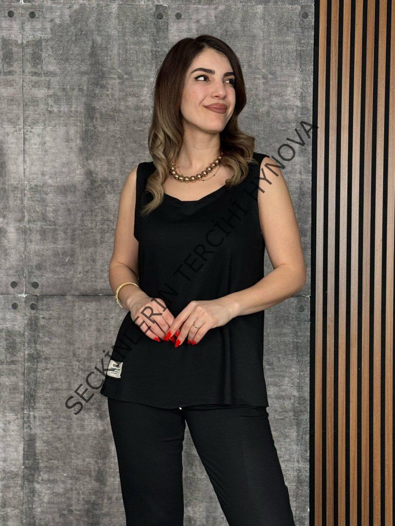 Kadın Askılı Yuvarlak Yaka Viskon Iki Iplik Bluz Ve Eşofman Altı Ikili Takım
