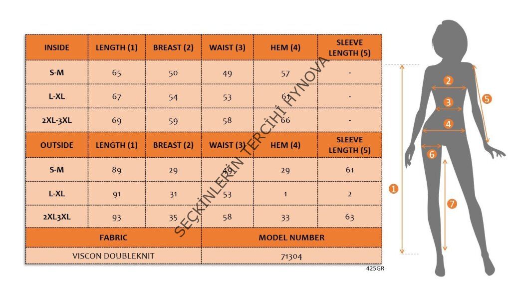 Modelin Ölçüleri: Boy:165, Kg:55, Göğüs:90, Bel:72, Kalça: 100