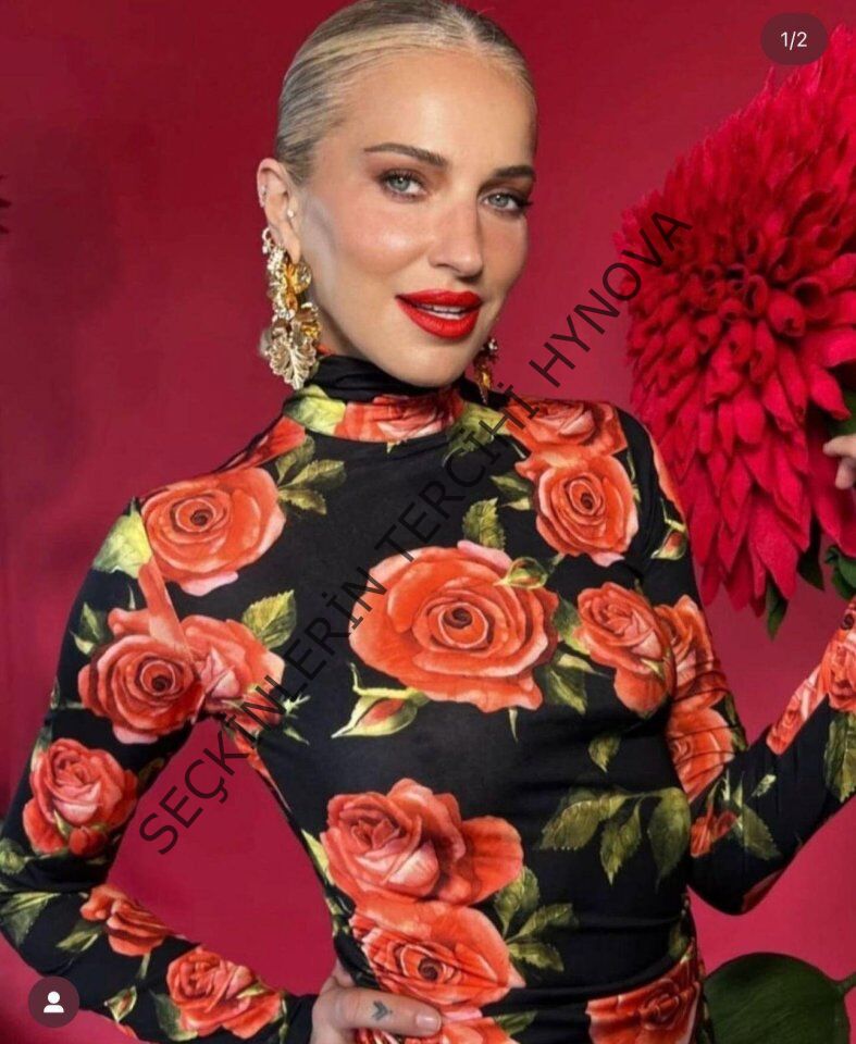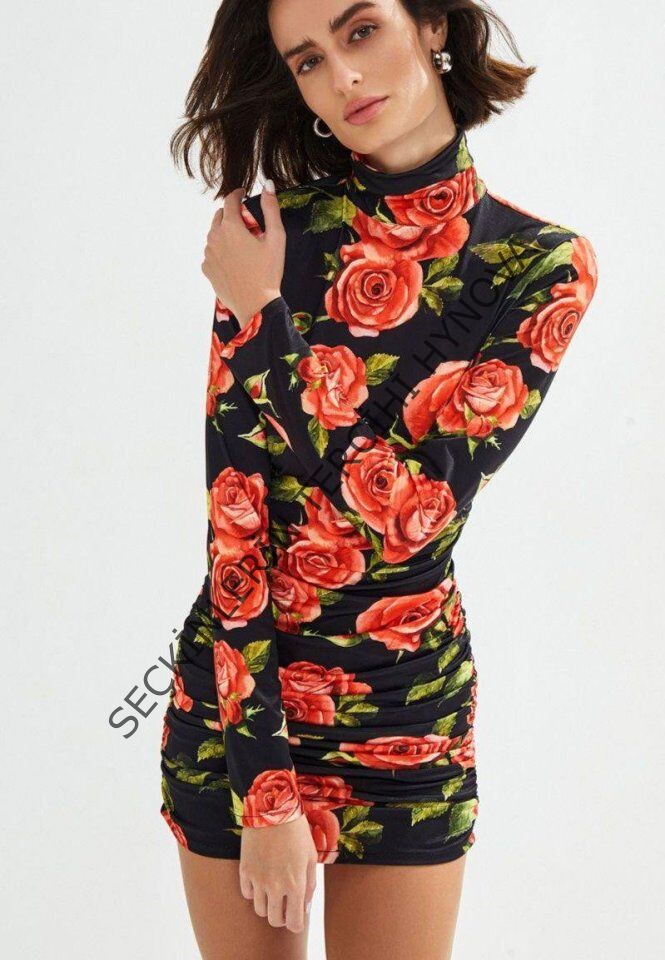 Kadın Balıkçı Yaka Gül Baskılı Fırsat ürün Mini Elbise