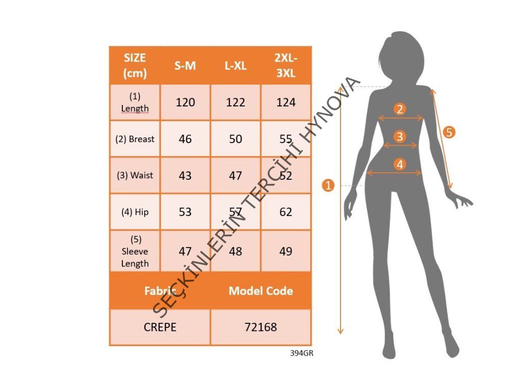 Modelin Ölçüleri: Boy:165, Kg:55, Göğüs:90, Bel:72, Kalça: 100