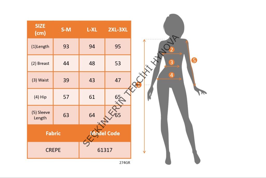 Modelin Ölçüleri: Boy:165, Kg:55, Göğüs:90, Bel:72, Kalça: 100