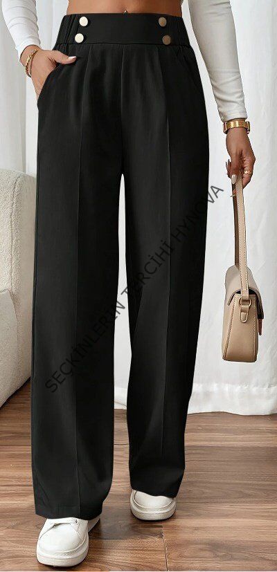 Kadın Beli Lastikli Düğmeli Ithal Krep Pantolon