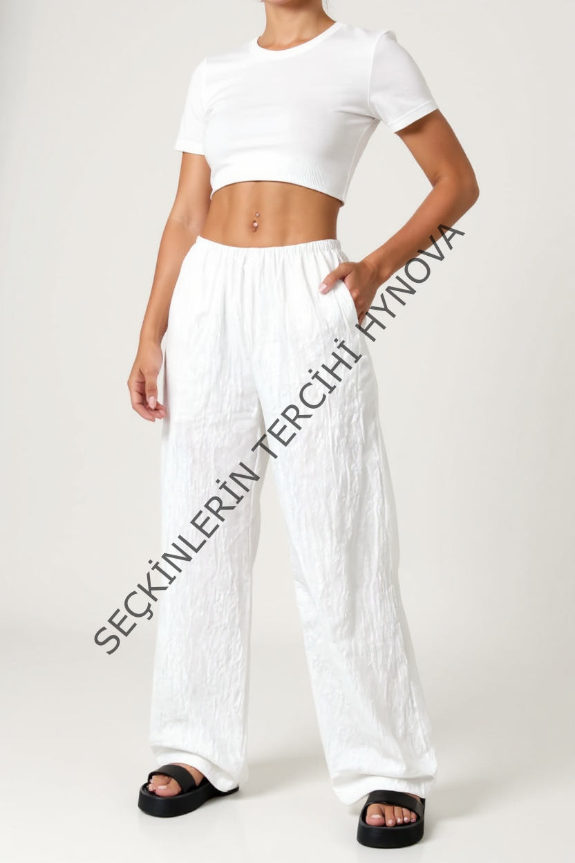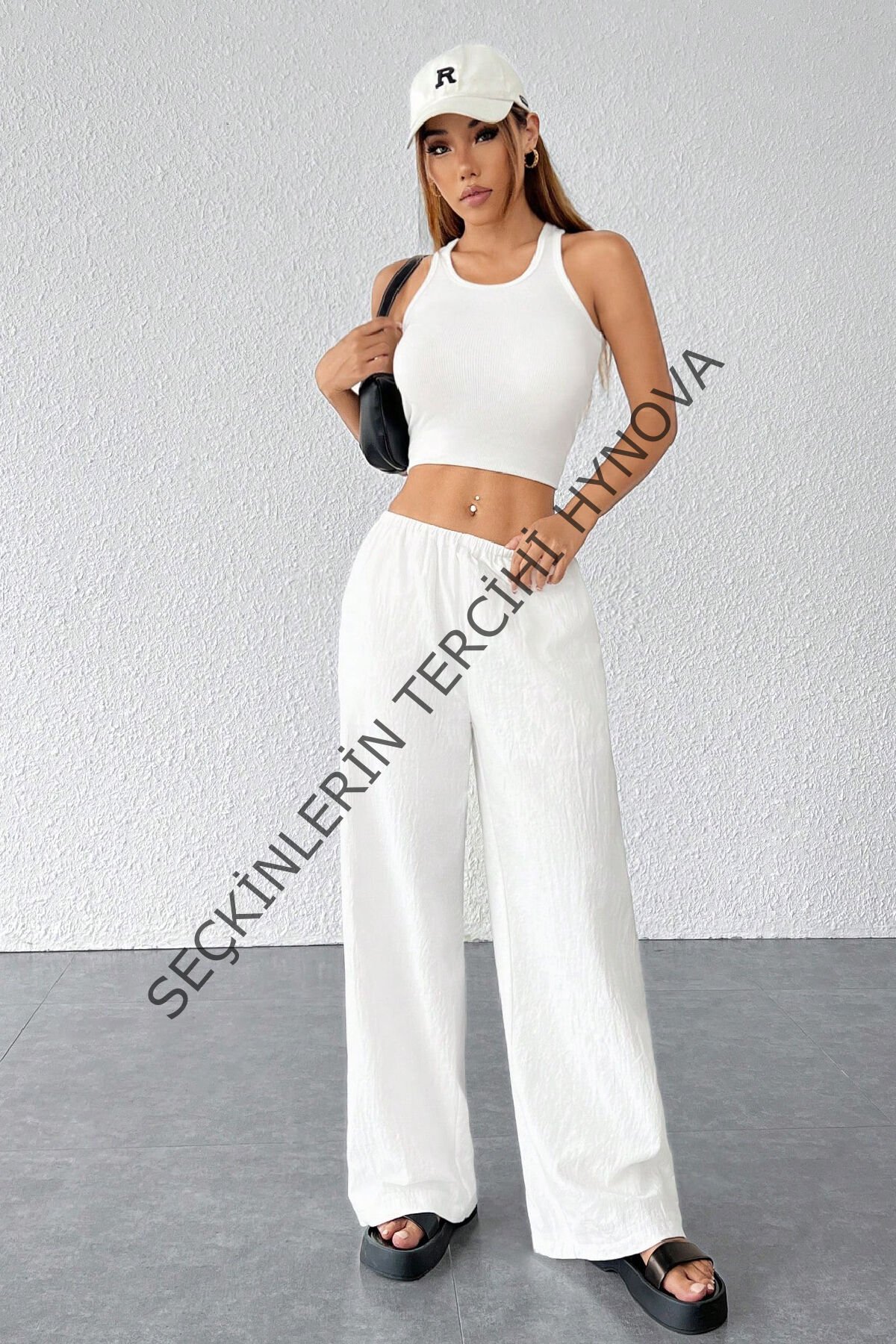 - Günlük gezilerde, tatilde ya da ofis şıklığında kolayca kombinlenebilen bu kadın pantolon, beyaz rengiyle her tarza uyum sağlar.
