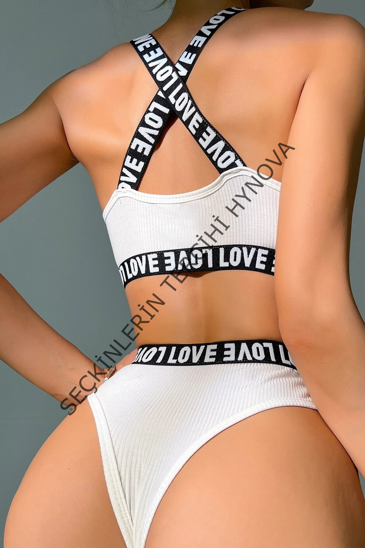 Kadın Beyaz Çapraz Sırt Ve Love Yazı Detaylı Iç Çamaşır Takımı – Modern, Konforlu
