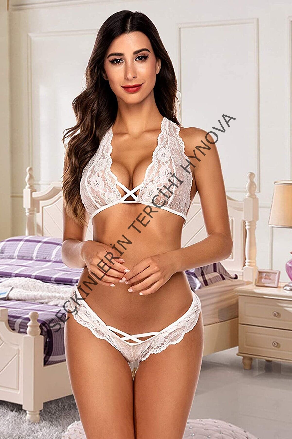 Kadın Beyaz Çarpraz Bağlı Şık Sütyen Külot Takımı – Modern, Konforlu ve Günlük Kombinlere Uygun
