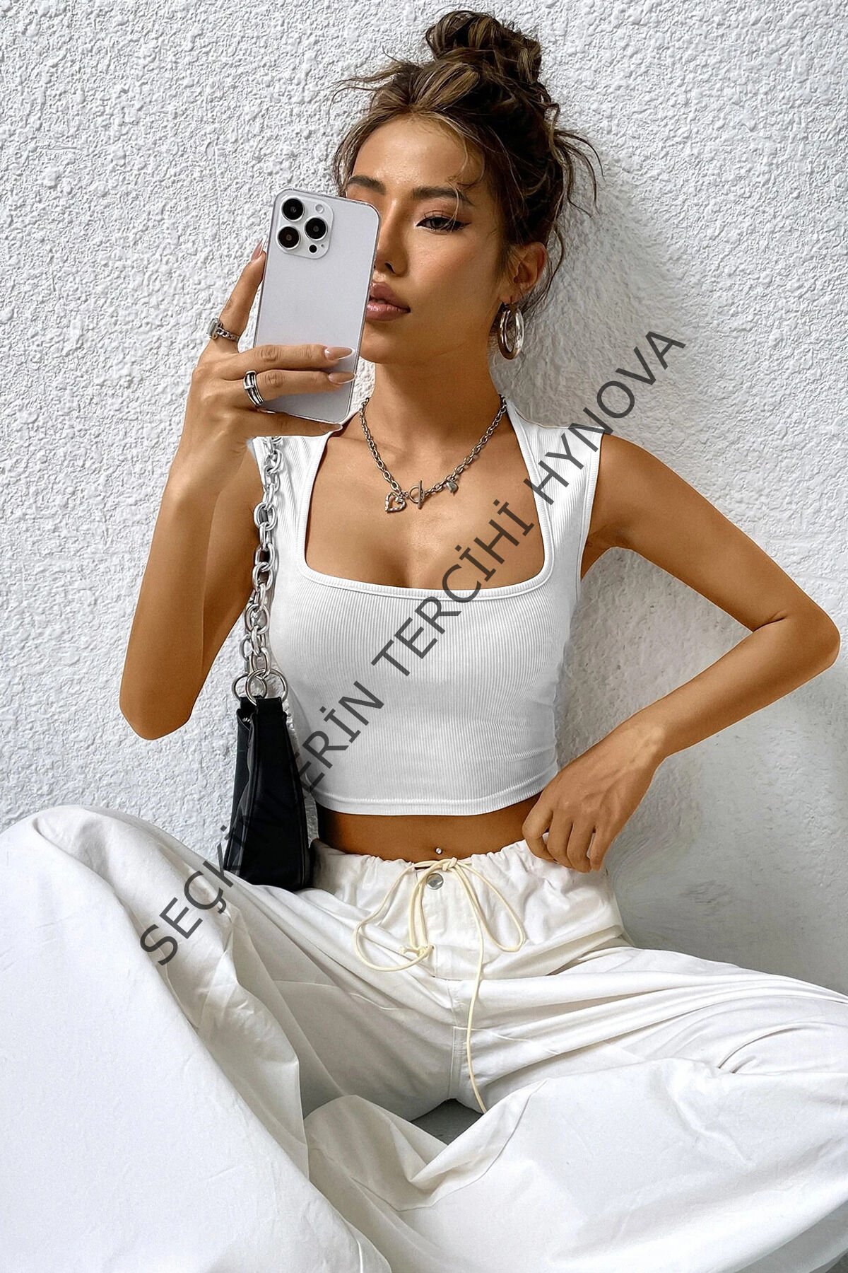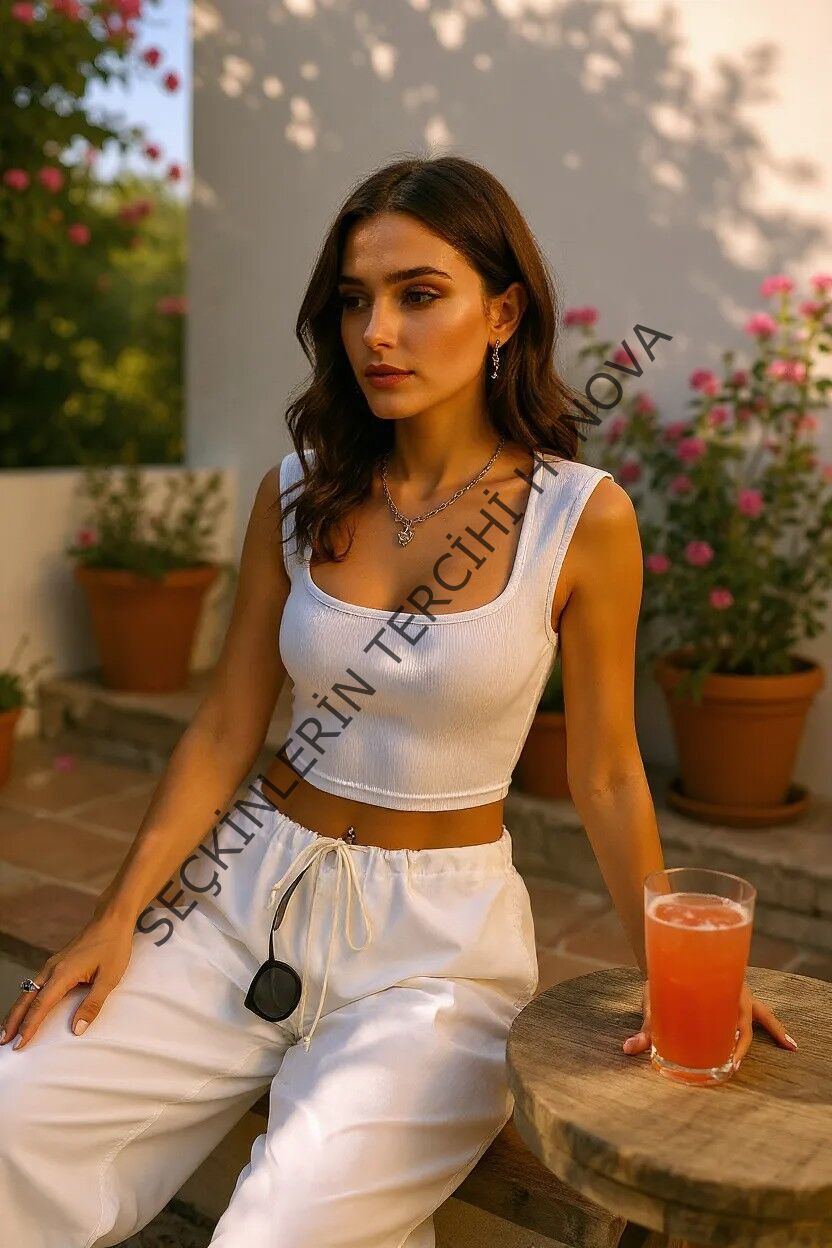 Kadın Beyaz Kare Yaka Kalınlaşan Omuz Detaylı Crop Top Bluz – Şık, Rahat ve Kolay Kombinlenebilir