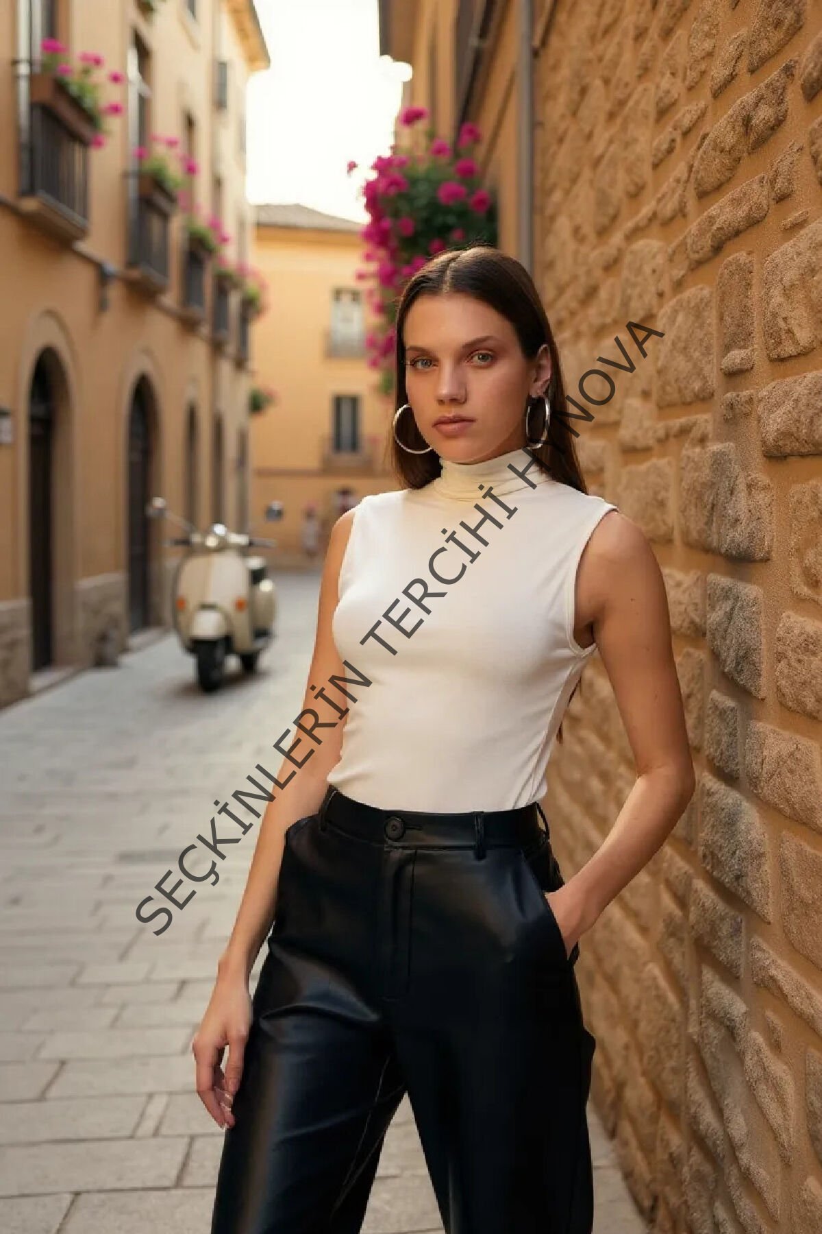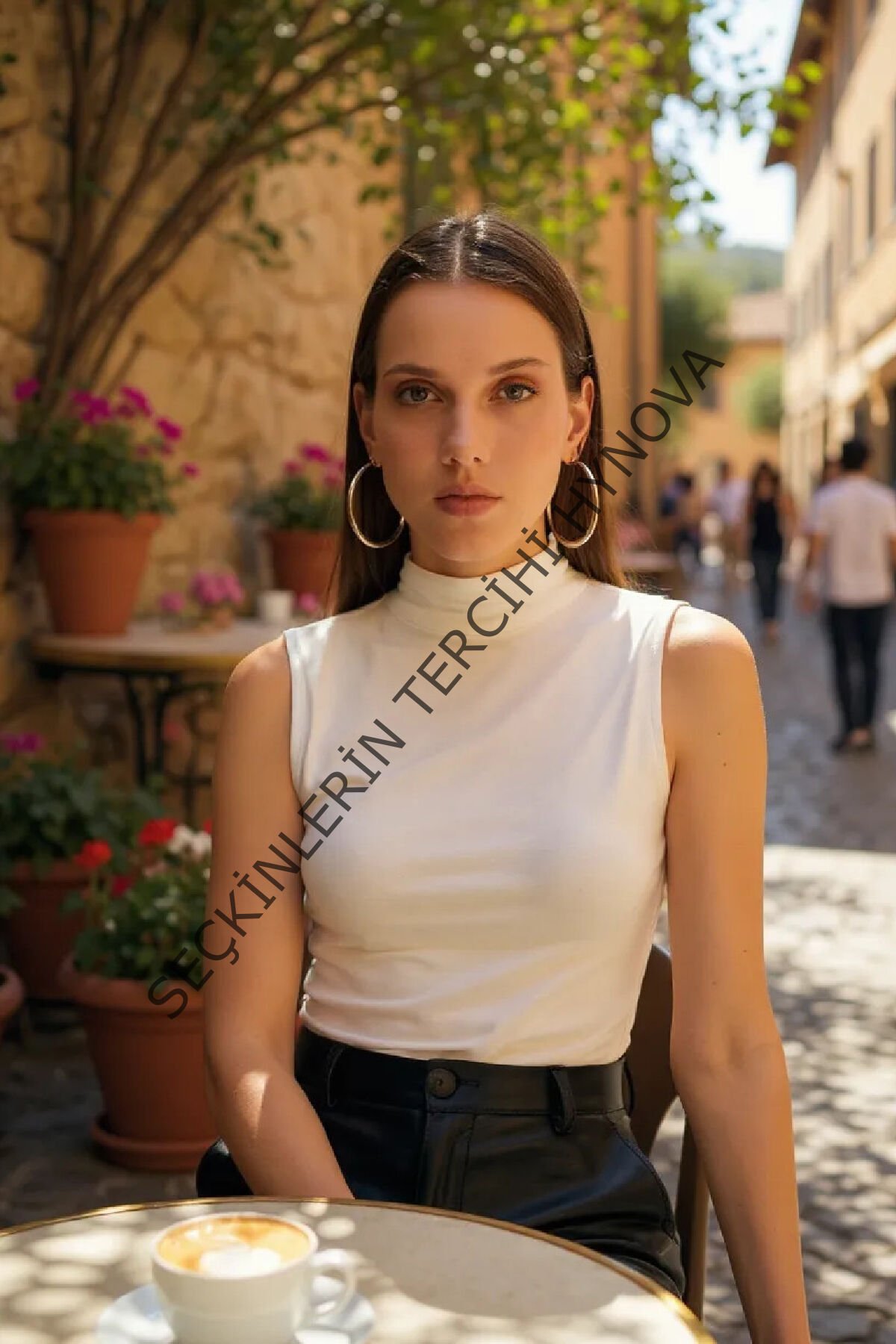 Kadın Beyaz Kolsuz Balıkçı Yaka Basic Bluz